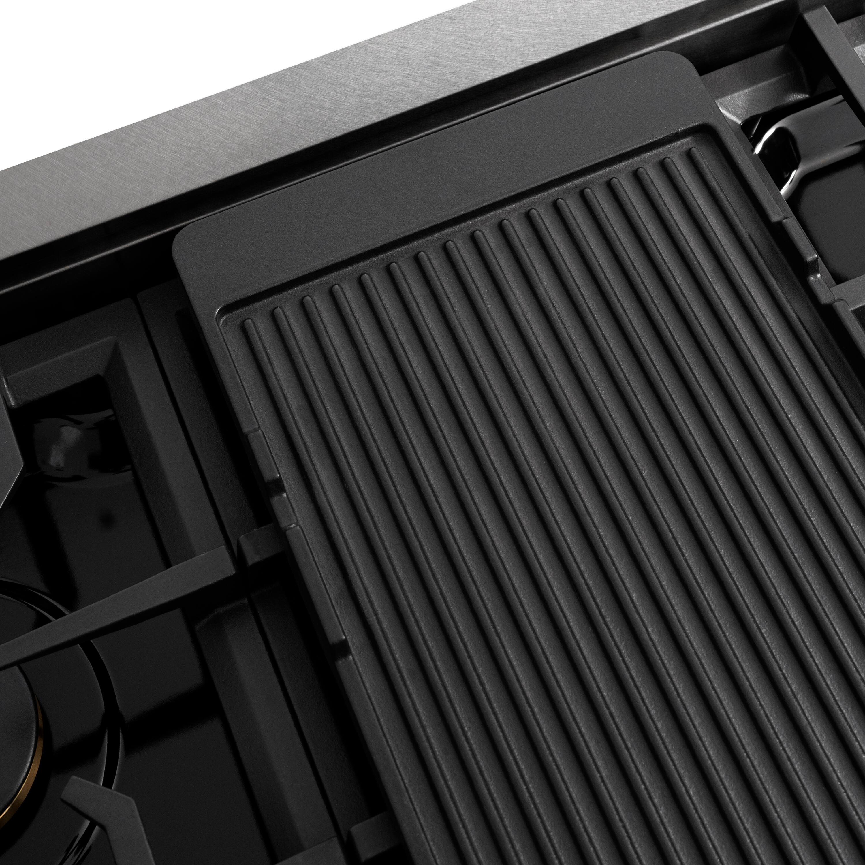 - A:Answer This rangetop features a high-quality nonstick enameled cast iron griddle that has a grill side and a flat side.