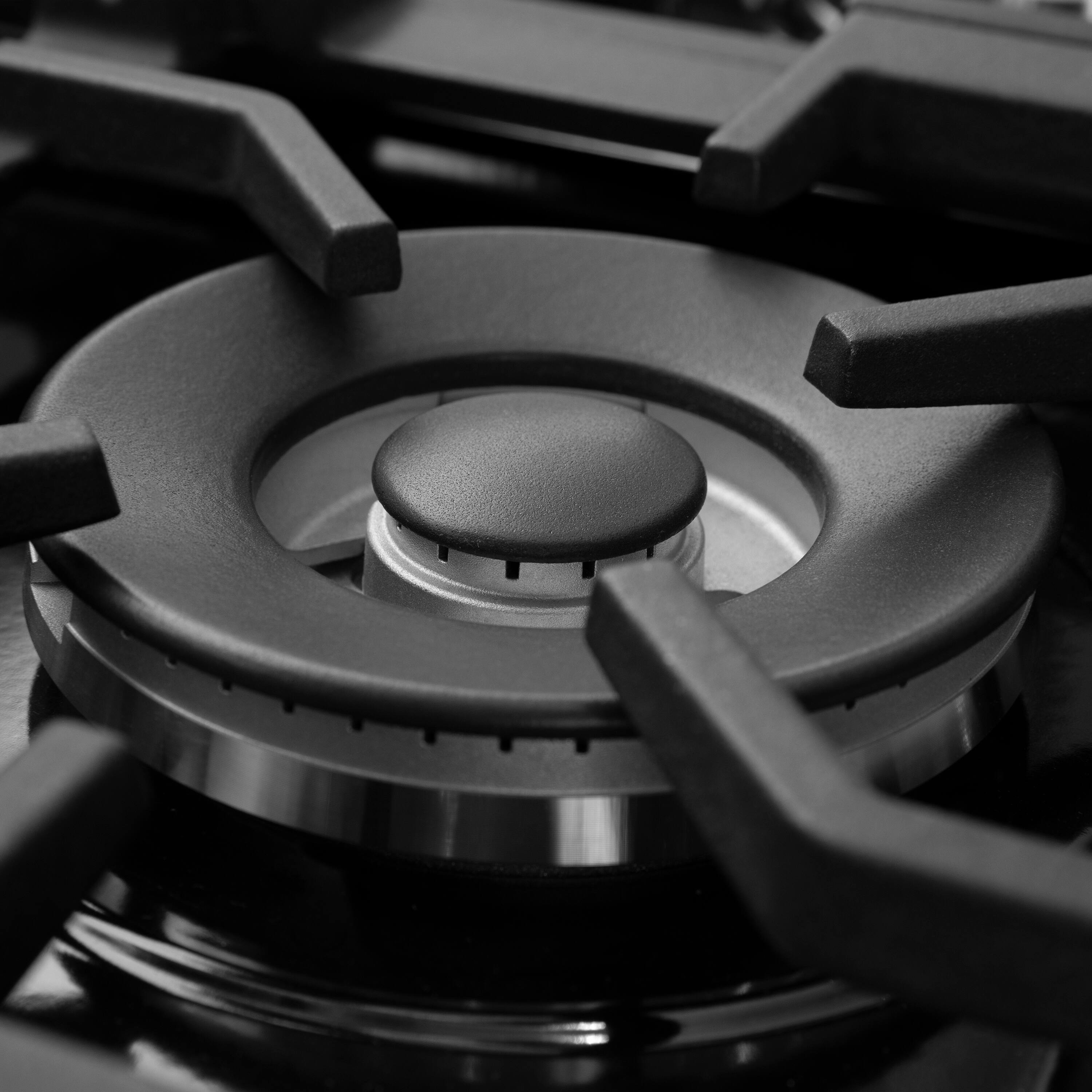 - A:Answer The range is equipped with two commercial grade cast iron grates. The grates are designed to optimize heat distribution and provide even cooking. Cast iron grates are durable and can withstand high temperatures.