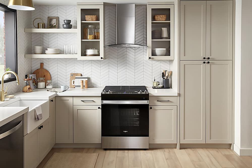 Love my new Whirlpool Gas Range Stove! Modern looking with high heat burners that make boiling water fast and heat up foods quick!!!