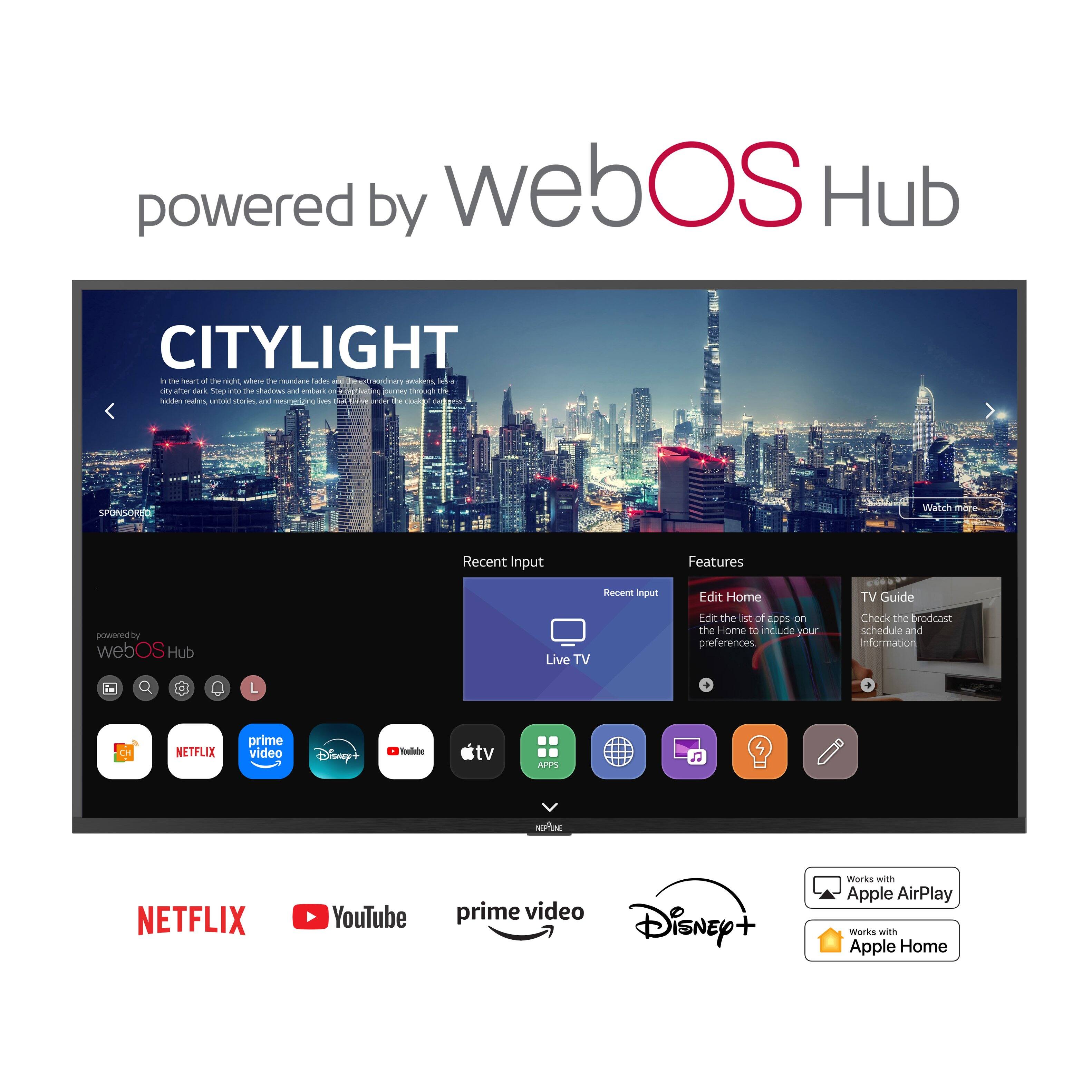 Recently mounted this TV in our outdoor pavilion. Picture is bright and clear. WebOS is straightforward and easy to use but we're an Apple house, so we linked to Apple TV and HomePod to get a louder speaker system. Great TV and would buy again.