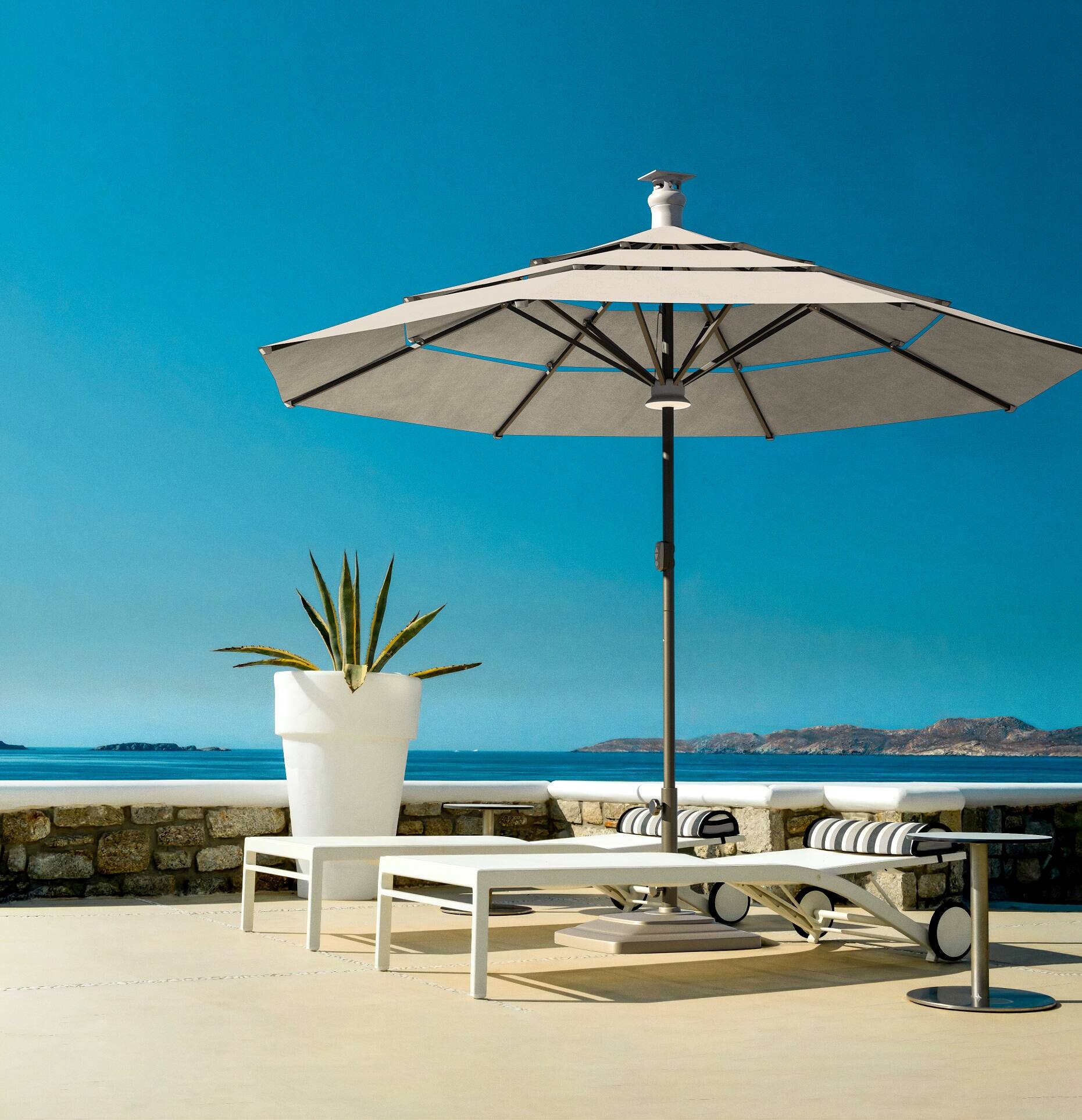 This review is from Above - Height Series 11-ft. Smart Sunbrella Umbrella with Remote Control and Wind Sensor - Spectrum Indigo