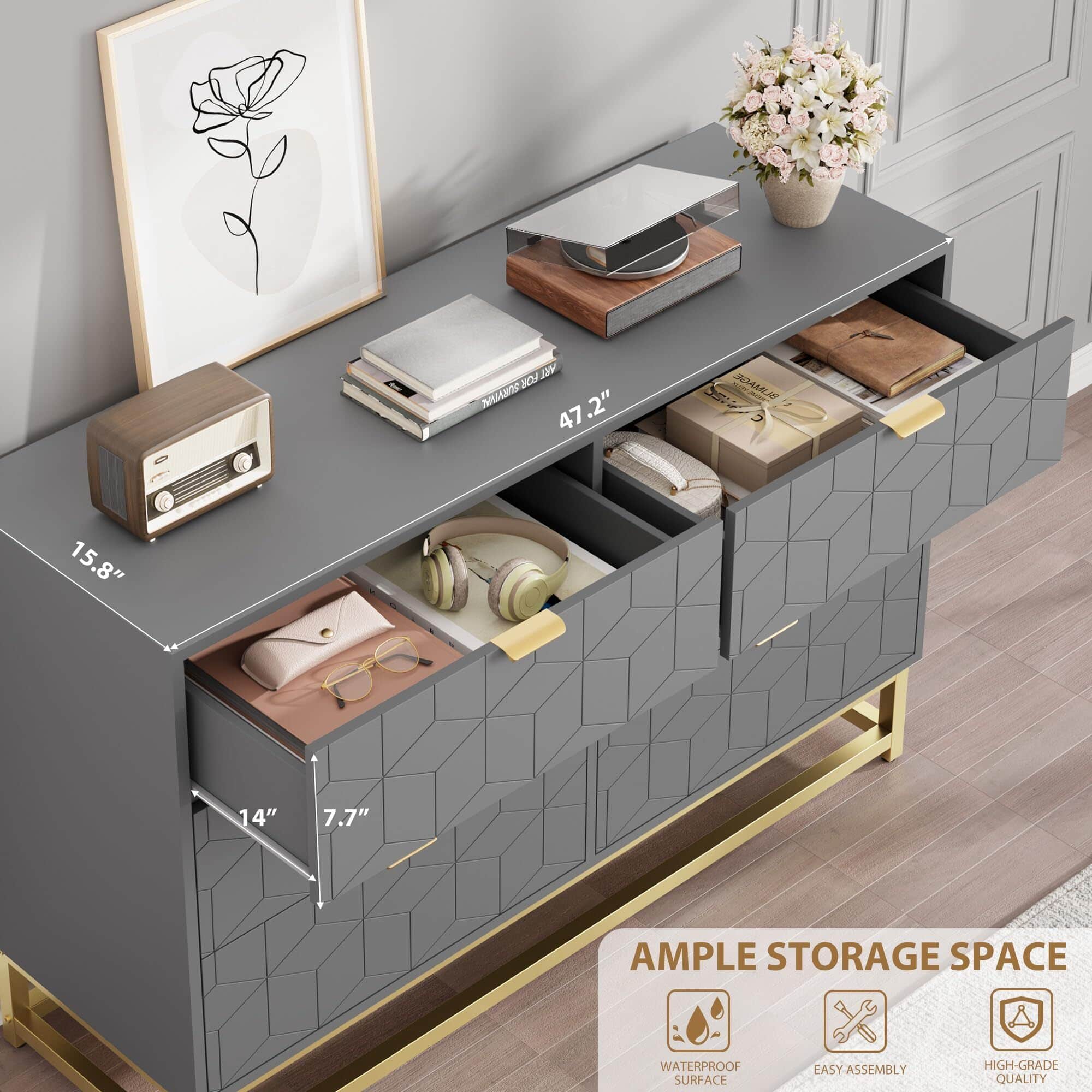 This review is from Acekool - 6 Drawer Dresser, with Gold Handles, for TV Stand & Closet - Black