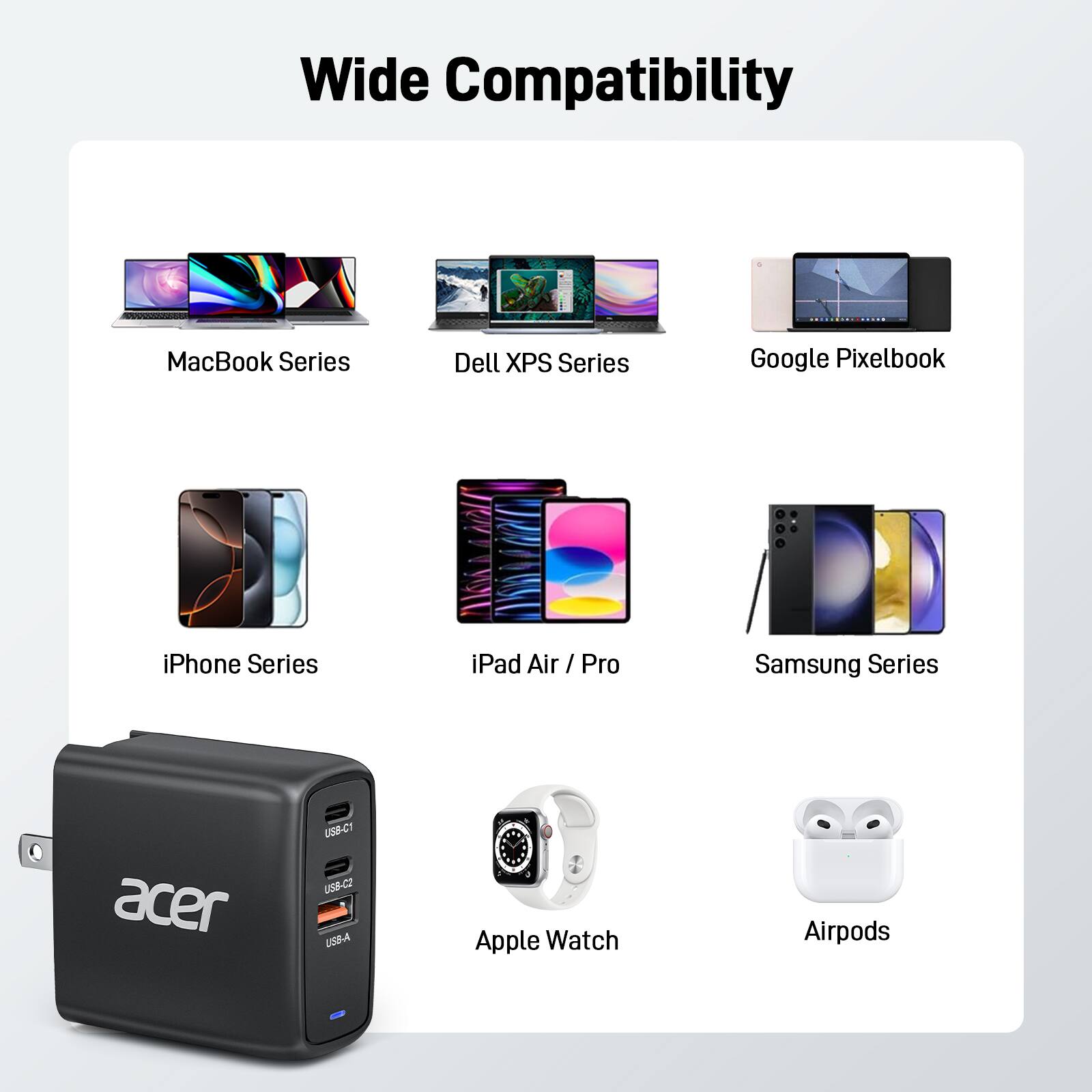 Adapter is a compact, efficient MacBook charger that delivers fast charging whether you are at home, in the office, or on the go, and works with a wide range of USB‑C devices and cab