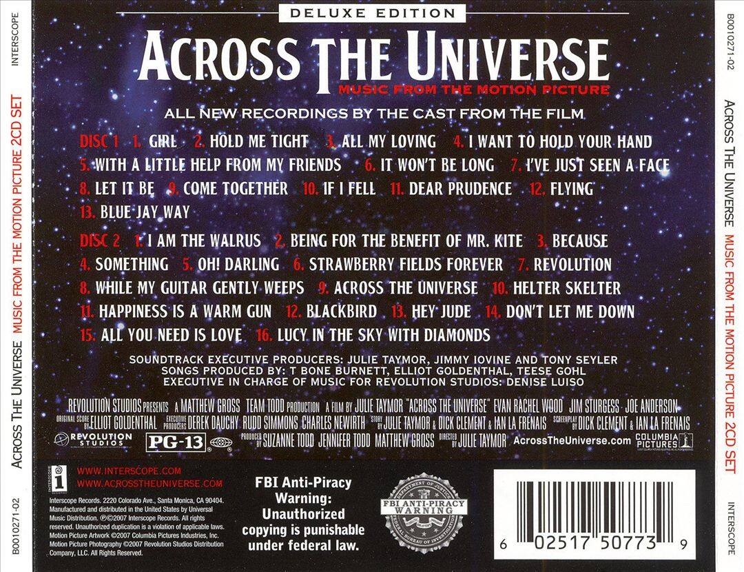 This cd is a must have for anyone who has watched and loved Across the Universe! A definite new found appreciation for The Beatles after watching this movie and listening to this cd. I must have played Bono's version of "I am the Walrus" to the point of excess by now.