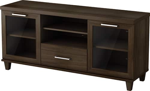 Item was damaged. Bestbuy gave a small credit but i still feel overcharged as the top piece of stand has a noticeable crack all the way through. Crack was discovered in final stages of home assembly, too late to take apart and return. Disappointed; however, the finish and overall quality is good. The cabinets and shelf space are good. Legs are sturdy. I will upload a better picture soon. Samsung 55 fits great