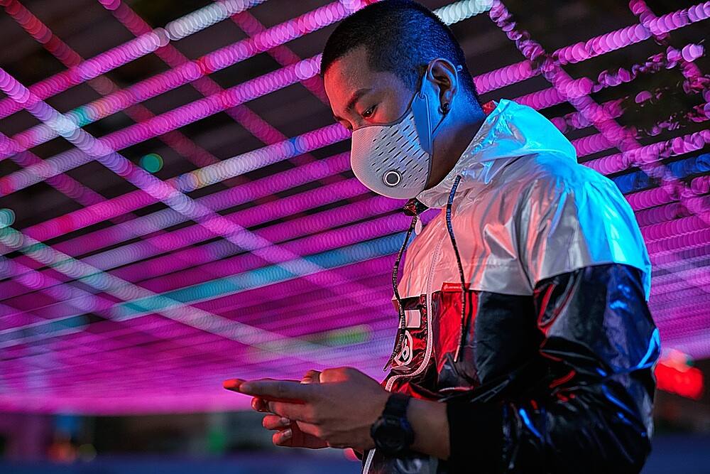 Best Buy came through like usual with super fast shipping. I honestly had no idea what to expect as I hadn’t read any reviews or videos or really photos of this product. Maybe I was first consumer to buy one. Anyways, the packaging is extremely neat, and on par with you might expect a $100 mask to present as. It comes with a the outer mask shell, the air sensor, 4 individually wrapped and sealed filters, a nice drawstring carrying pouch, spare ear elastic adjusters (pair already installed), a plug for if you remove the sensor, and instructions.