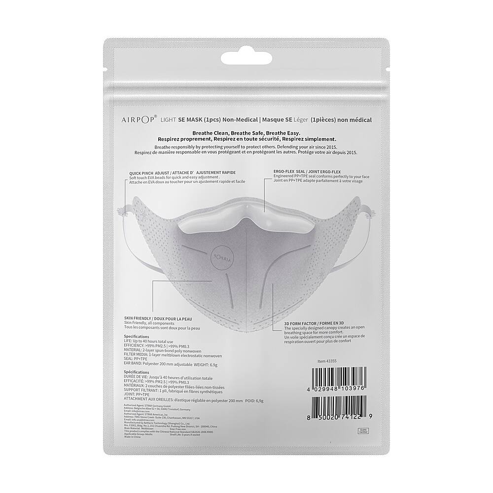 The AirPop Light SE is the only mask I will wear. It is comfortable, breathable and protective. I have worn them on 5+ hour flights and sometimes forget I have them on my face! I definitely prefer them for any mask-wearing needs.