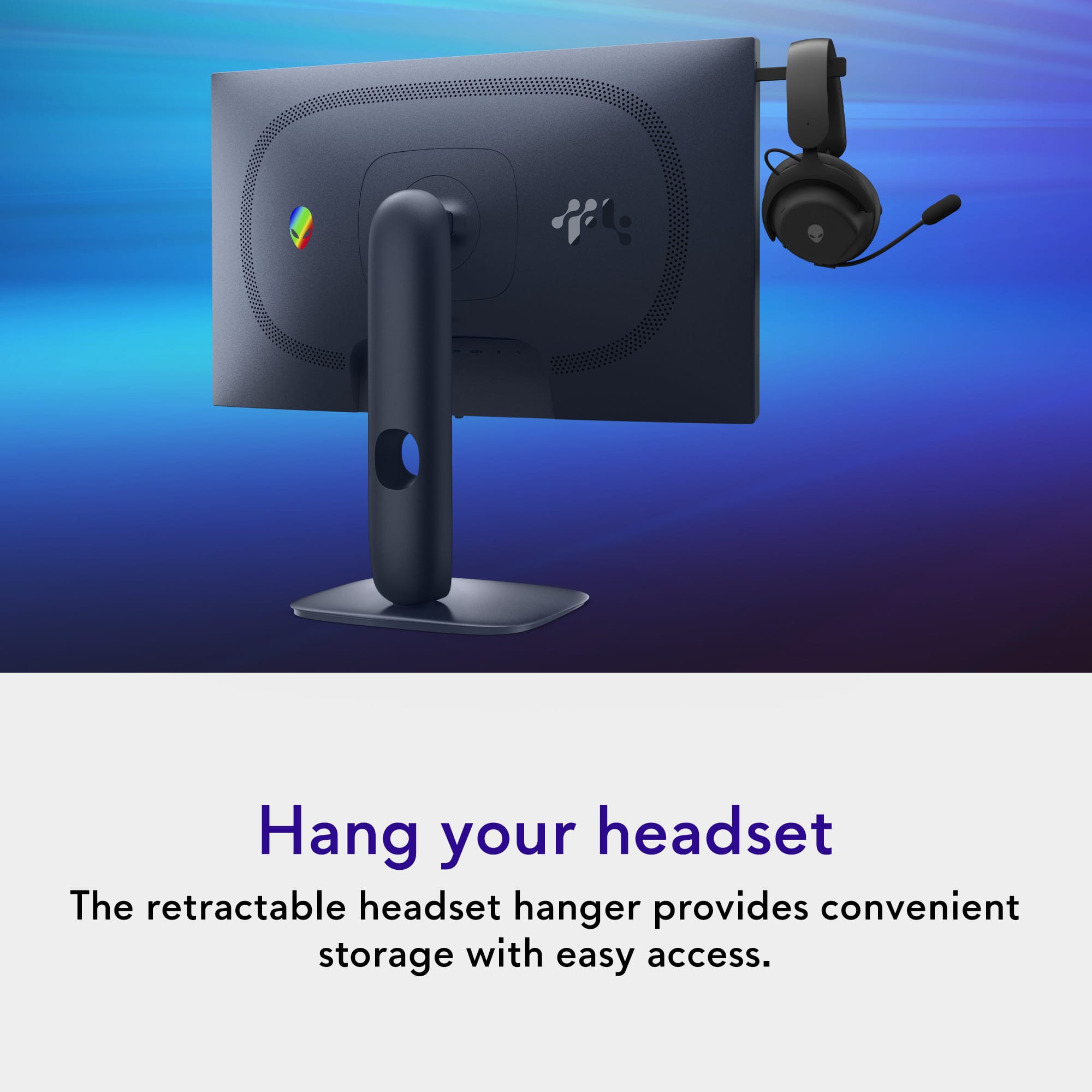 When facing the monitor, there is a button on the upper left edge. If you press it, a bar pops out. This is nice if you use a headset during work or gaming. It is a space saver and allows you to simply hang up your headset when you're done. Very nice touch.