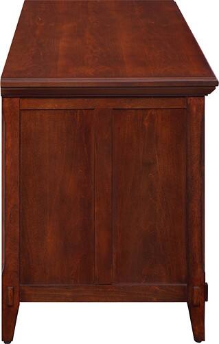 Since I could not get my new 55-inch tv mounted on the wall in a timely fashion, I needed something to put it on. I love this furniture. I paid for it to be assembled and delivered, which happened a couple hours before the TV arrived. They took great care and it is beautiful. Doors and drawers glide smoothly. Even came with a touch up pen (for when I hit it with the vacuum). Actually a good match with all my woodwork. I am very pleased with this piece of furniture.