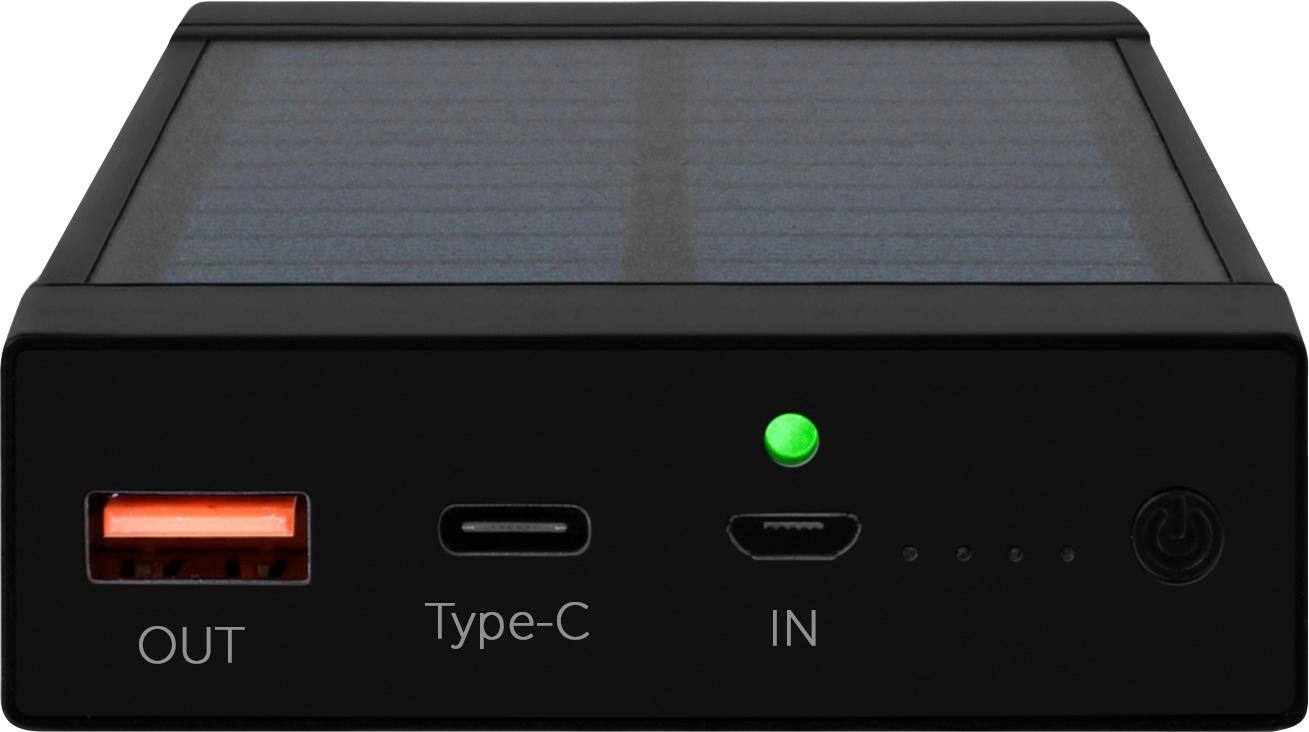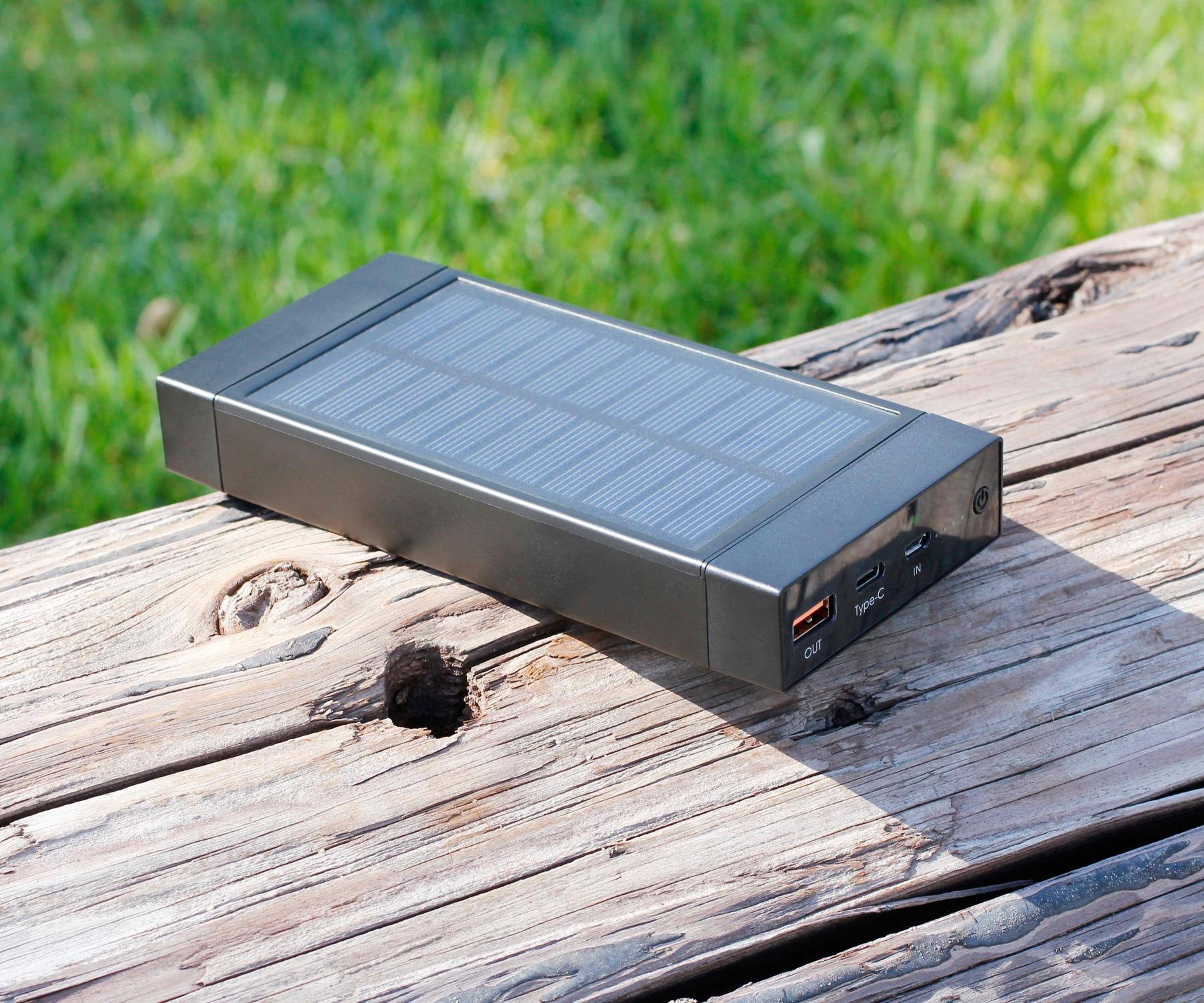 Doesn’t charge with the solar panel, I placed it in direct bright Vegas sunlight for two days and it got absolutely no charge at all. It would only charge my iPhone up twice, it felt like it was only 5,000 mah. Returned and got a MyCharge Adventure Ultra for 100&