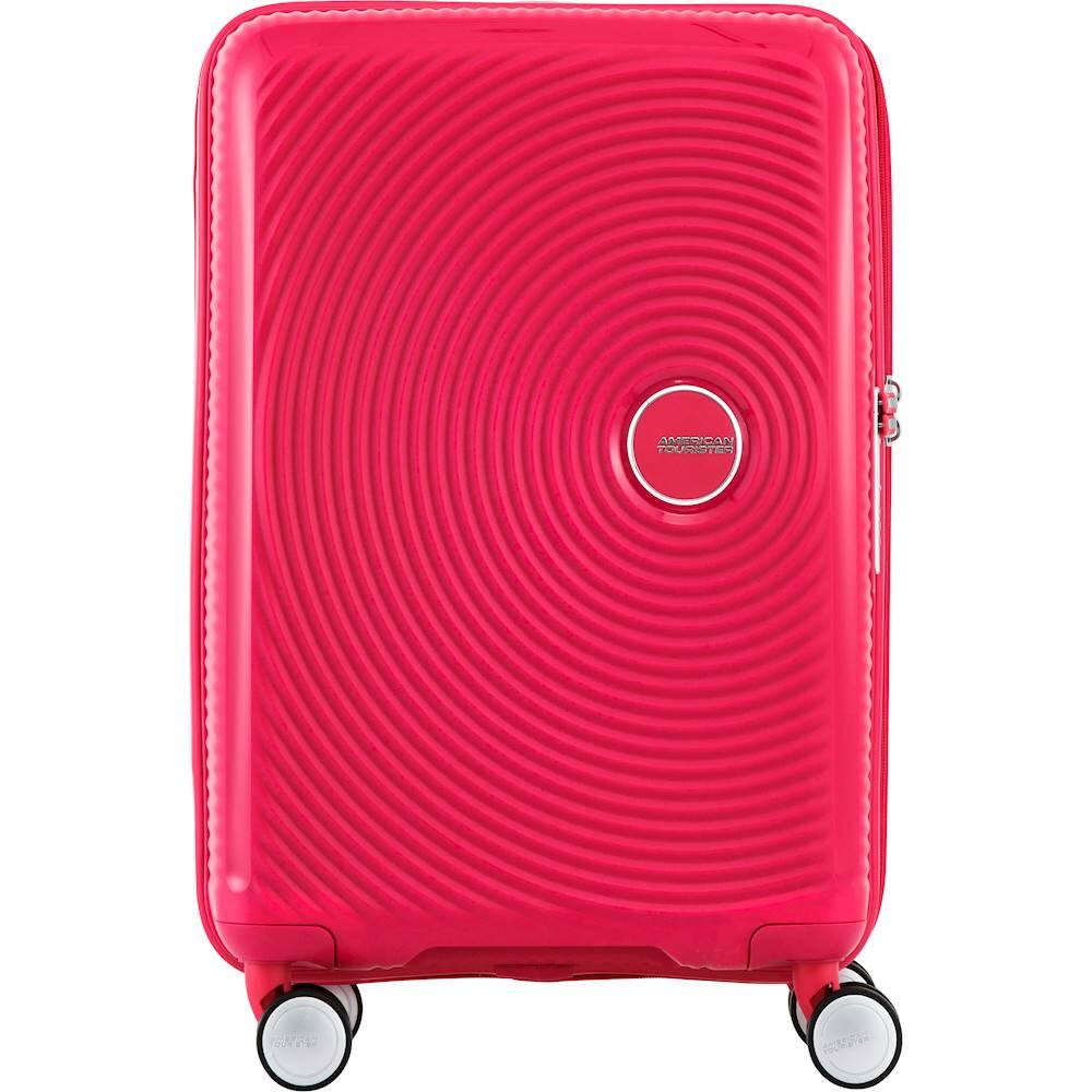 Great suitcase, came in a set of three: large, medium and carry on. Has TSA approved lock. Great eye catching color, easy to spot!