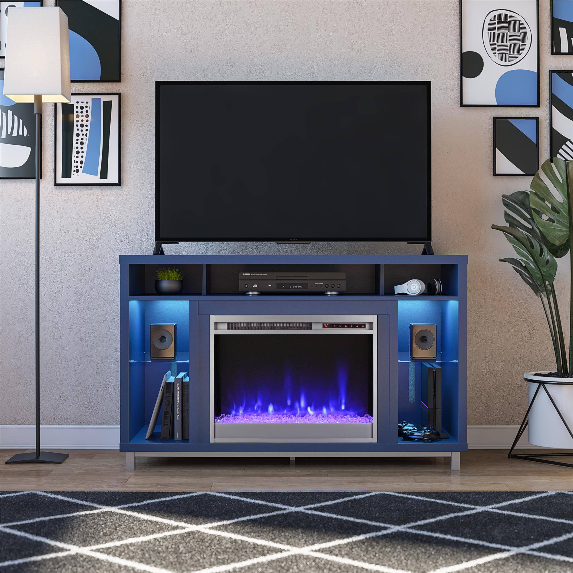 Fantastic electric fireplace with great space for candles, consoles, a tv, books, or other small space things. Nice material, very sturdy if built right. I built this table with a screw driver and my bare hands, anyone can do it, it looks like you spent double or triple the price in person. Also the electric fireplace display can be on without the heat emitting from the fireplace, so it’s convenient