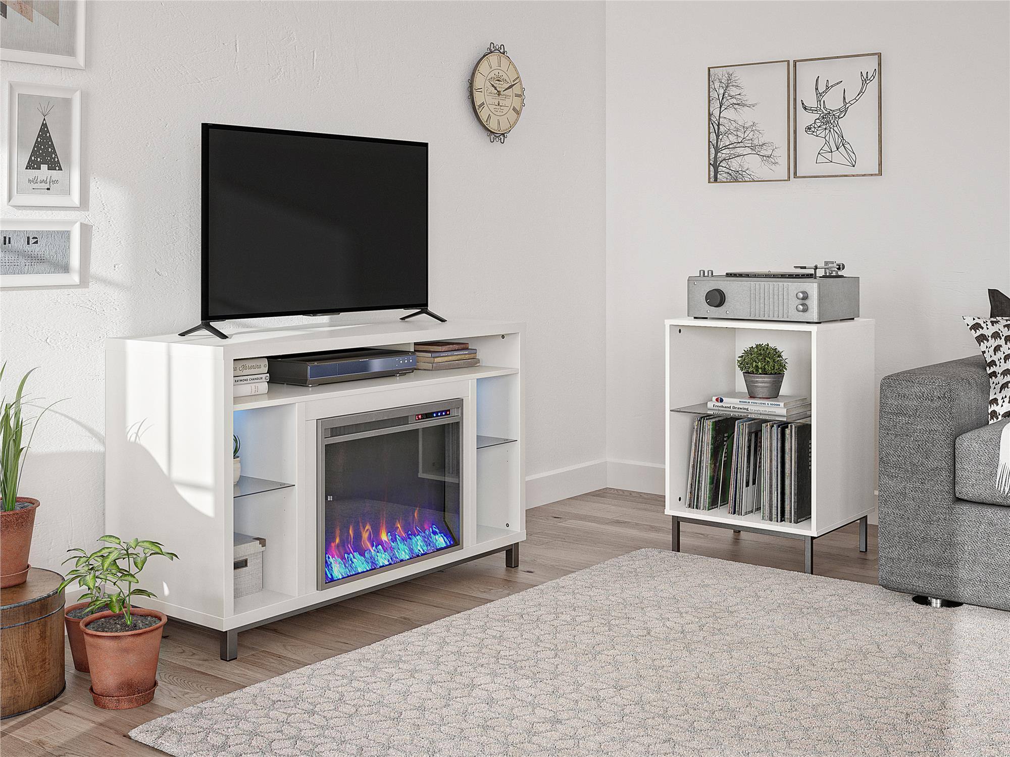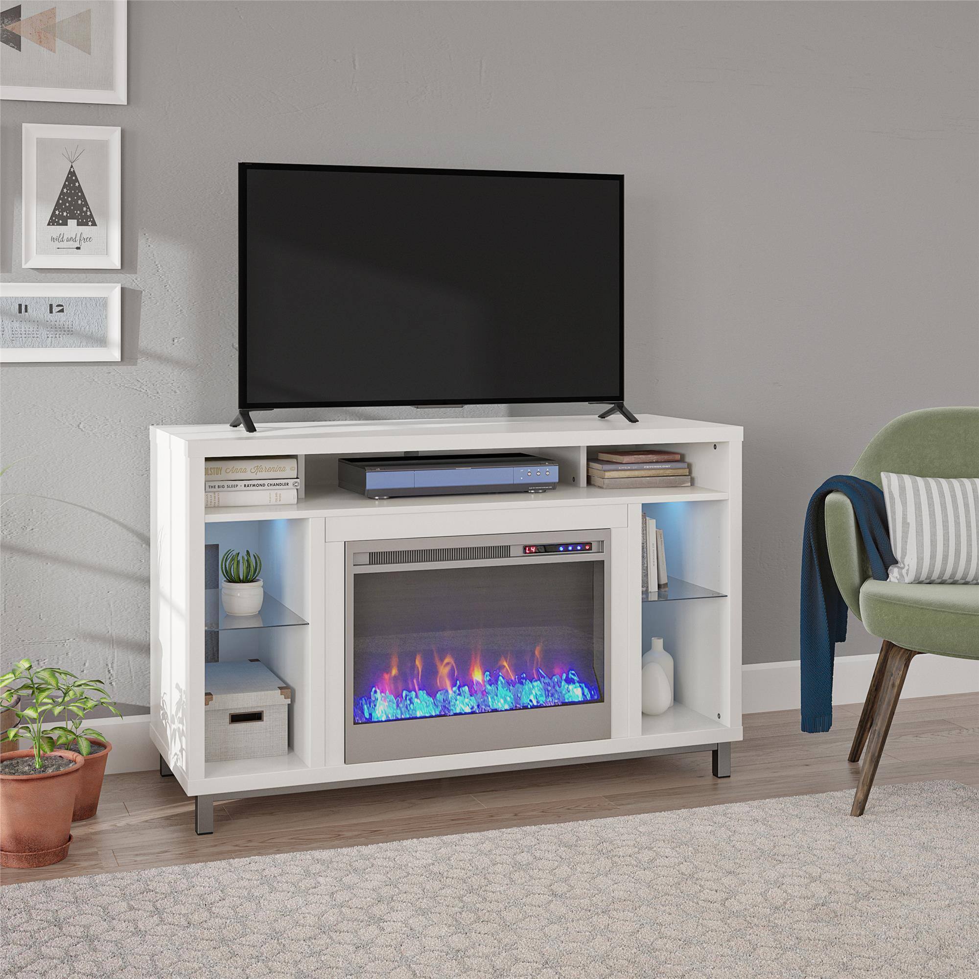 Fantastic electric fireplace with great space for candles, consoles, a tv, books, or other small space things. Nice material, very sturdy if built right. I built this table with a screw driver and my bare hands, anyone can do it, it looks like you spent double or triple the price in person. Also the electric fireplace display can be on without the heat emitting from the fireplace, so it’s convenient