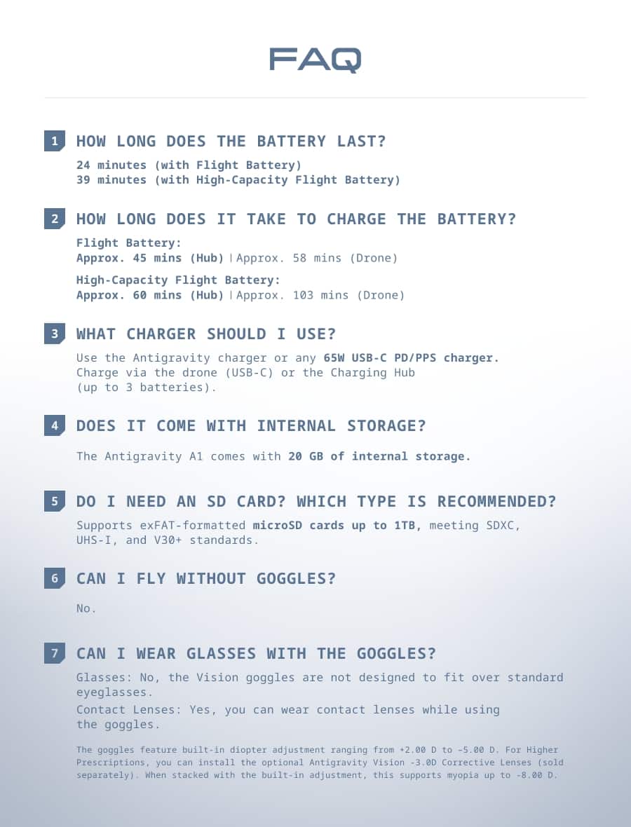 Simply an amazing drone. Very easy to fly and enjoy. The support from Antigravity is amazing in getting all the programs installed and updated. With zero prior experience in video editing the tutorial had me complete my first reel in as little as five minutes. Quality is superb and all the packaging was very well made. It’s the little details such as a complete storage bag which was included really showed me how proud the company takes both their name and product. Well done