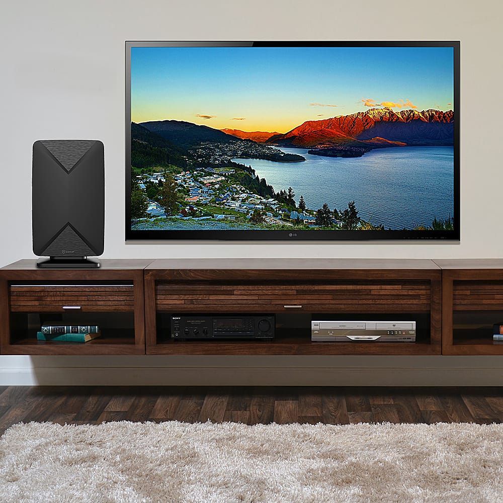 This is an excellent antenna! I got way more than I expected when I purchased this. It's a beast! Nobody expects to get great reception when you live in a valley like we do. I was just hoping to get one local news channel that I wanted. I'm so impressed by this antenna. We have so many channels now. I can't even believe it! And, that is without even trying. We just having it sitting inside on our mantel. If we put it outside and messed around with it for awhile, I can't even imagine what we'd get. It's truly better than cable! I highly recommend this to anyone!