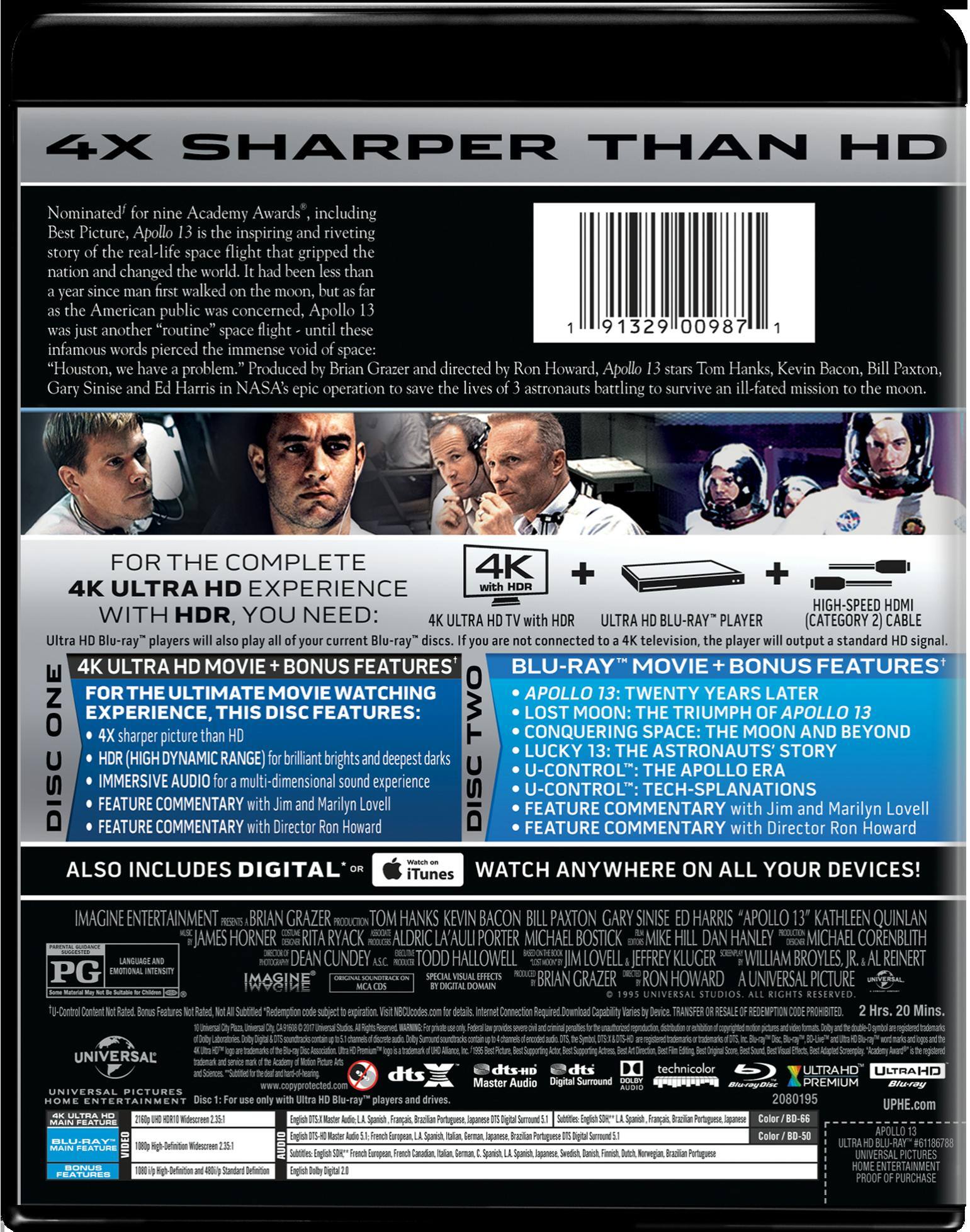 A great movie that encapsulates the gravity of the situation perfectly and gives you a small window into what these astronauts went through. The 4k version looks sharp, but the audio is where this film shines. The special features are okay, nothing new compared to previous releases.