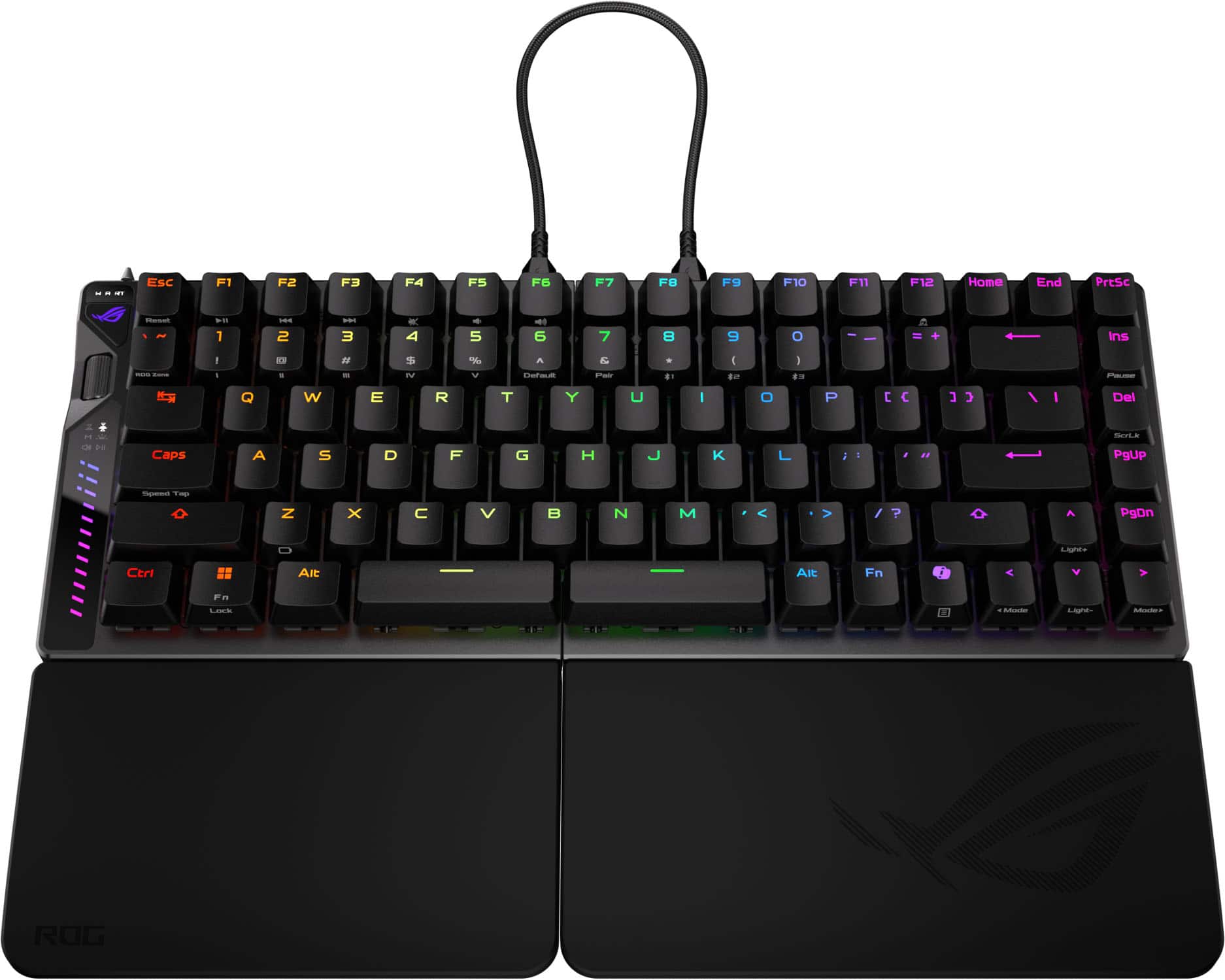The ASUS ROG Falcata is not your typical gaming keyboard, blending performance, ergonomics, adaptive technology, and accessibility. I originally chose this keyboard because of its split design, hoping to place each half on either side of my laptop for a more natural typing experience. I discovered that the halves require a proprietary USB connection to function, and unfortunately the cables are a bit too short for me to achieve my goal. I hope ASUS will release a longer cable in the future. That being my only “complaint,” this keyboard is practically perfect.