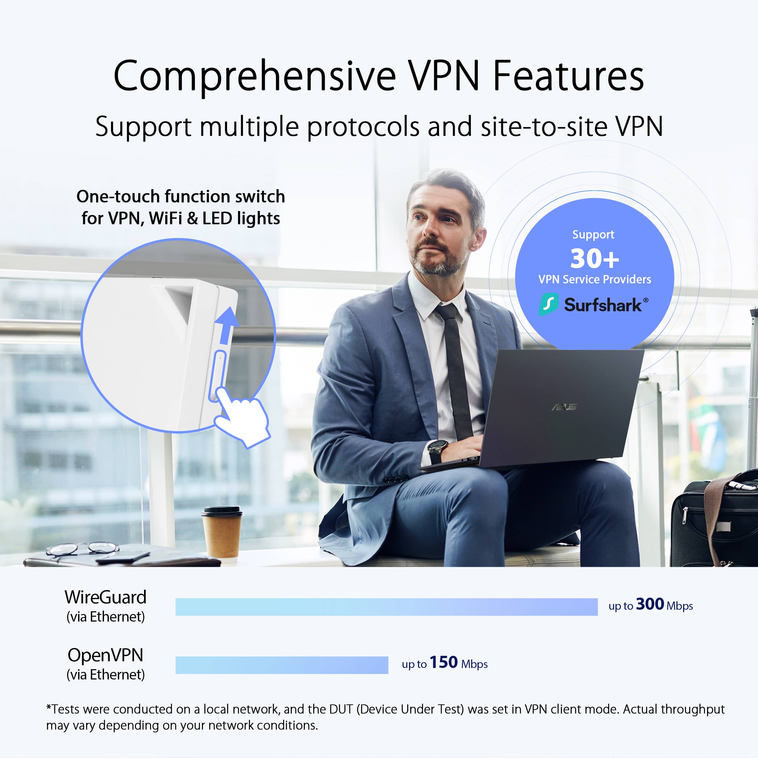 The ASUS RT-AX57 Go is an awesome Wi-Fi 6 travel router for people on the go. Its standout feature is the VPN client, which keeps your connection safe and private, even on public Wi-Fi in unfamiliar places like hotels. You can connect the router to the hotel’s Wi-Fi and create your own secure Wi-Fi network, letting all your devices—like phones, laptops, and tablets—connect safely through it. It offers fast wifi speeds and works as a router, mobile hotspot. It also includes AiProtection for extra security. Setup is super easy with the ASUS app, making it perfect for secure travel. Best of all, its compact size makes it a fantastic travel device, easy to pack and carry anywhere.