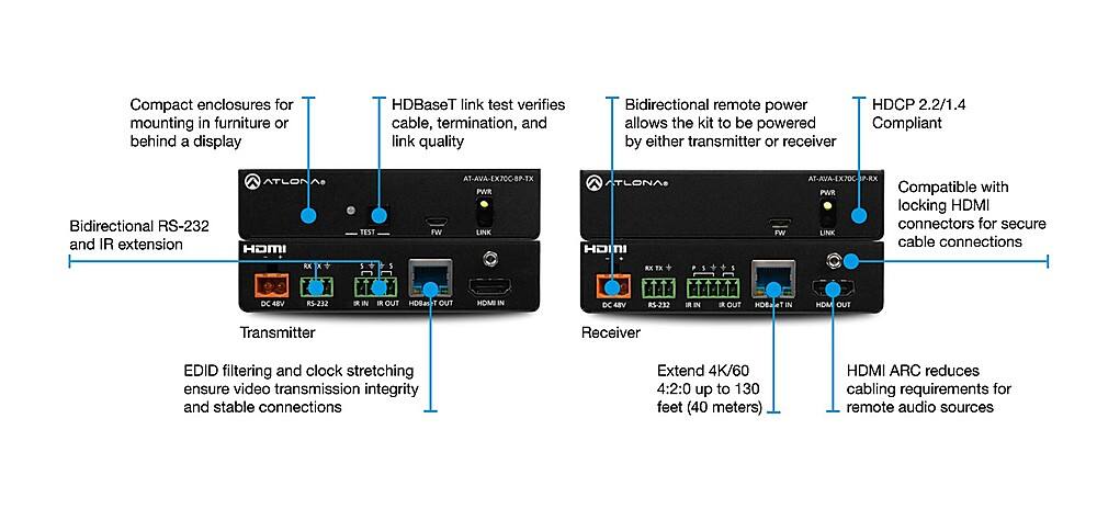 This was a challenging purchase. I had originally purchased a solution from amazon about a 3rd of the cost and just as feature rich. I needed it to finish out a build of a new theater project. After much work and a replacement of the amazon solution, I ended up taking a chance to purchase this one. I just installed it last night and have to say that everything works as advertised. I had a conversation with a tech from Atlona before committing to it and one thing that I learned was about the R&D expense that Altona puts into their products sounds extensive. Their product shows that investment as well. The ARC works which I found to be a very tricky proposition with other extension solutions. HDMI extension still has s small amount of synch issues but no where NEAR what I experienced with the $250 solution I had. You can tell very quickly this is a professional solution. The IR extension was a bit challenging to position but I eventually got it. Overall although the cost was significantly higher than other brands, there is no doubt the Atlona works and I believe has superior quality. I look forward to future firmware updates as well to continuously improve the product over time.