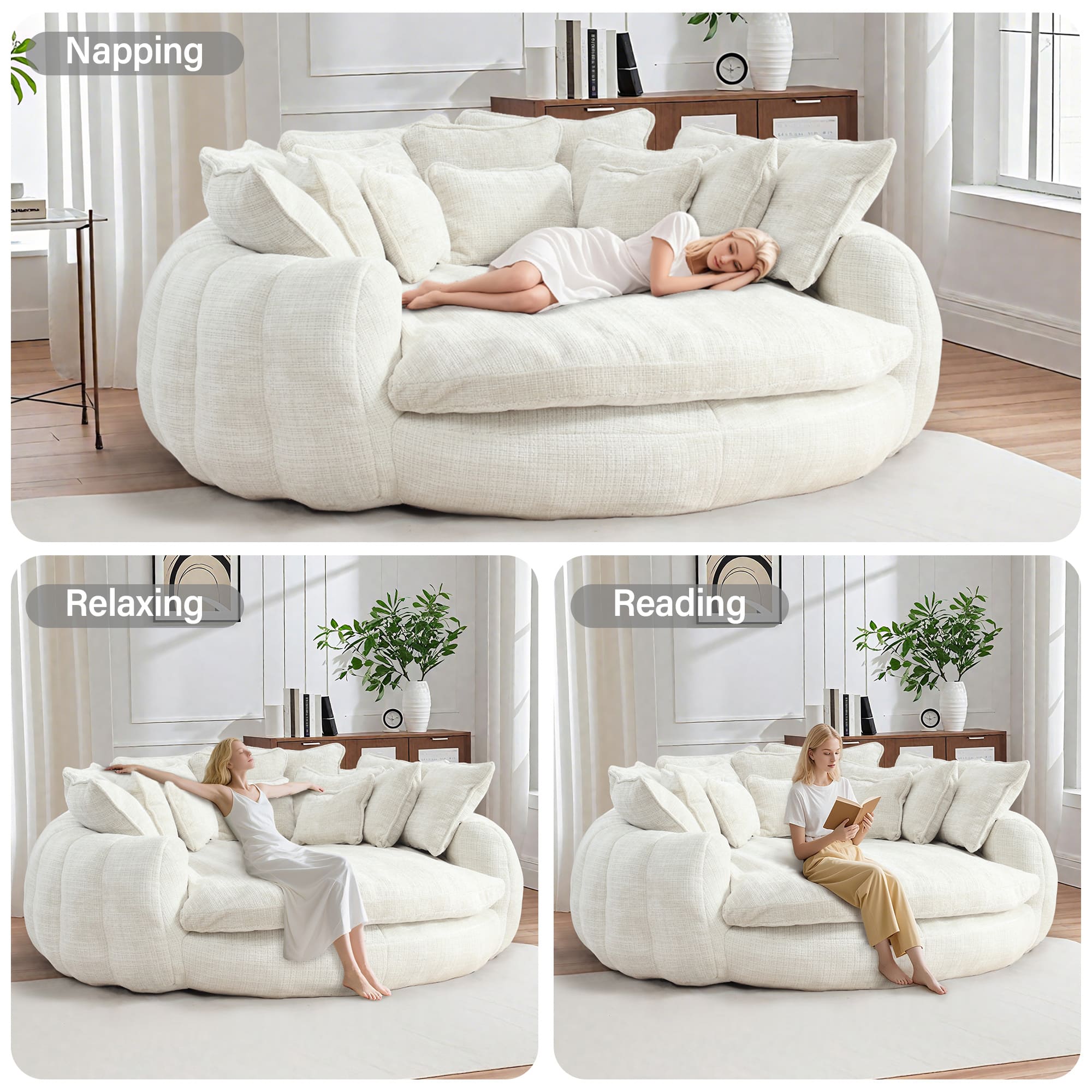 This review is from Aukfa - Double Loaf Sofa Bed - Oversized with Armrests, Large Padded High Back, Round Decorative Chair for Living Room/Bedroom - Light Gray