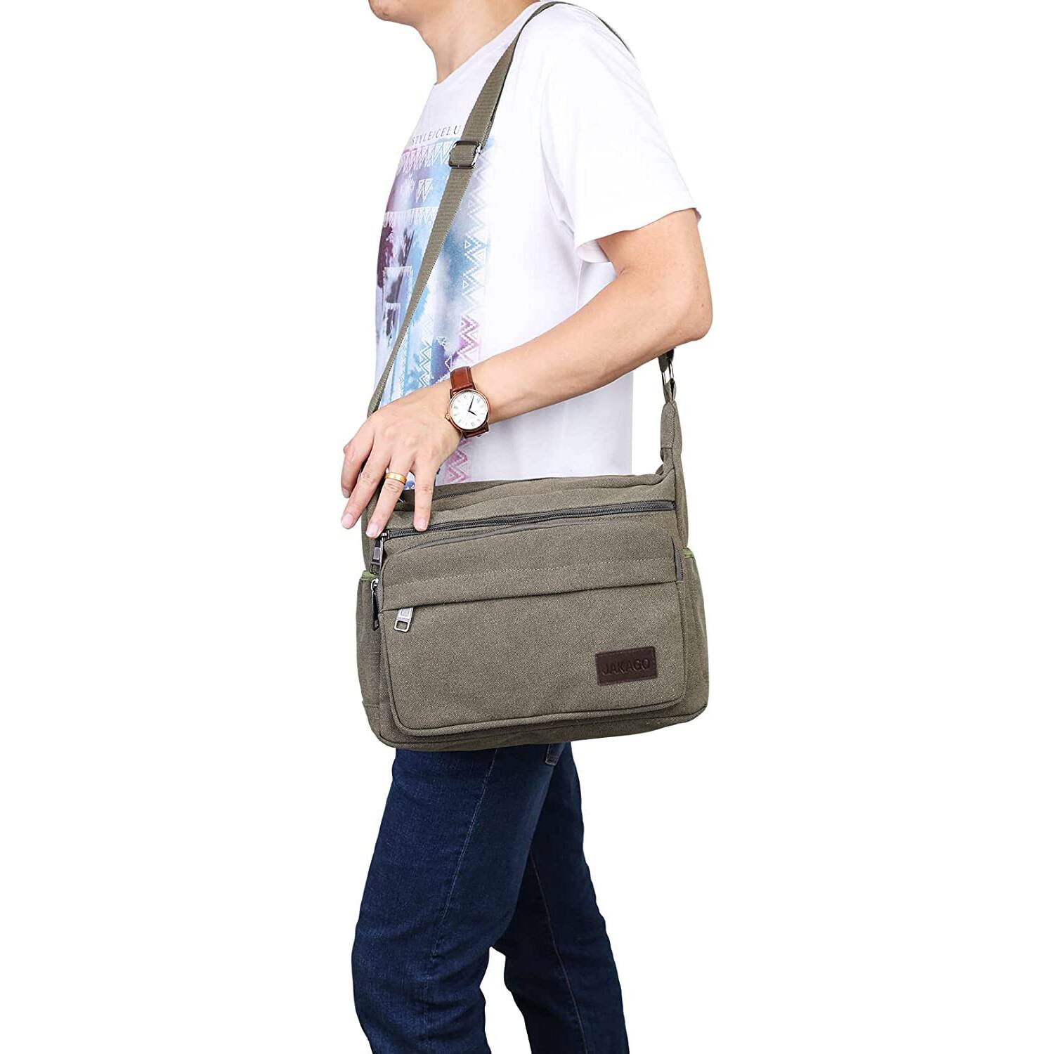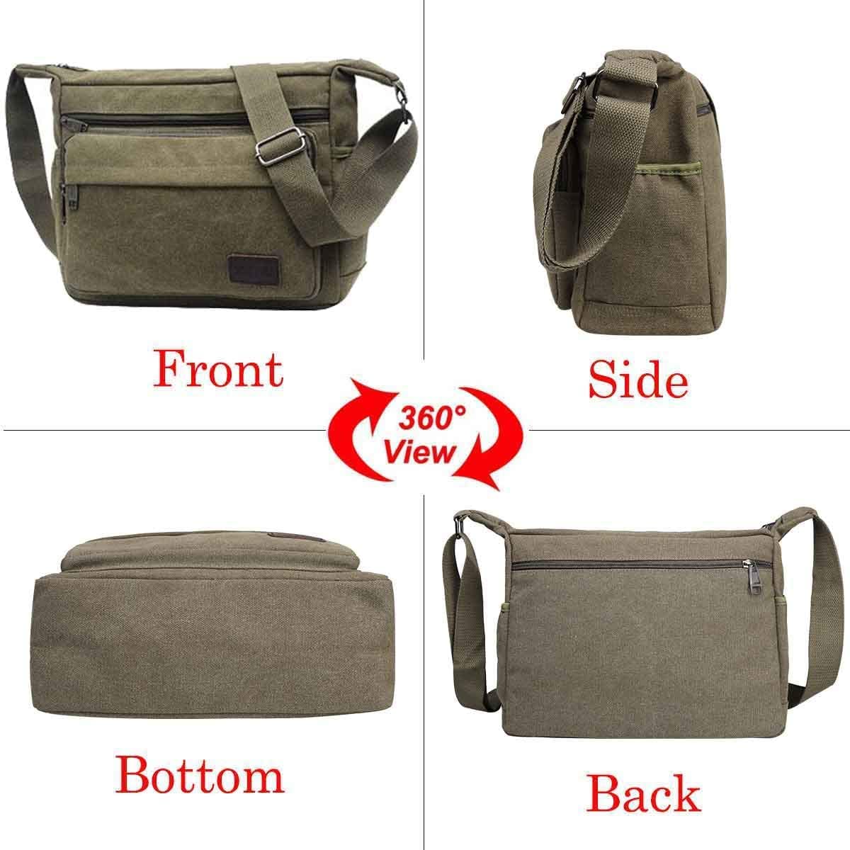 Auledio - Canvas Bag Men's Single Shoulder Crossbody Casual Large Capacity Men's Retro Travel Bag Multifunctional Backpacks - Green Very nice product