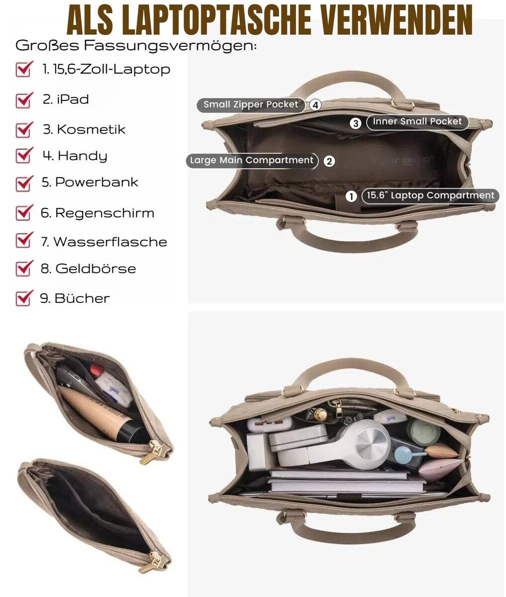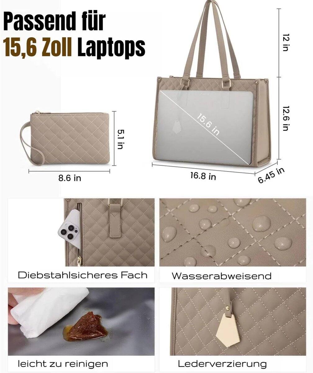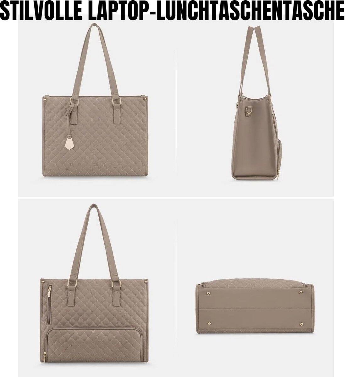 Best work tote I have ever owned and used. Easily fits all my essentials, plus my laptop. Has a detachable wristlet as well as a separate insulated compartment that I carry my breakfast, lunch and snacks for the day. Stylish quilted fabric where water runs off.