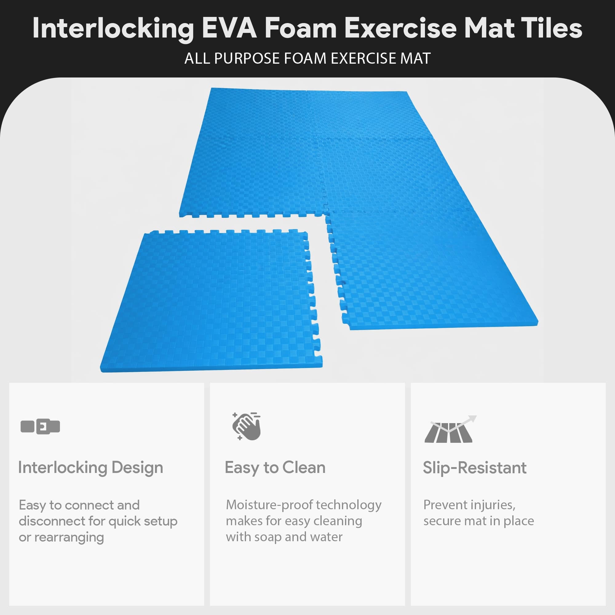 I received it quickly. The material is what I suspected. Strong and easy to put together. I choice the blue cause it makes it more bright when working out on it. I would recommend this to friends and family who need more support on the floor while doing floor exercises.