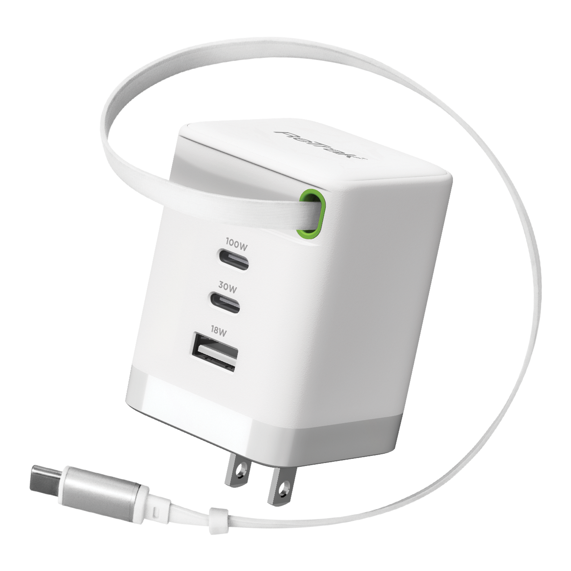 Microsoft has strange rules for their work job sites when it comes to chargers. This is one of the few GAN chargers that meets it by the lack of a detachable cable. Highly reccomended.