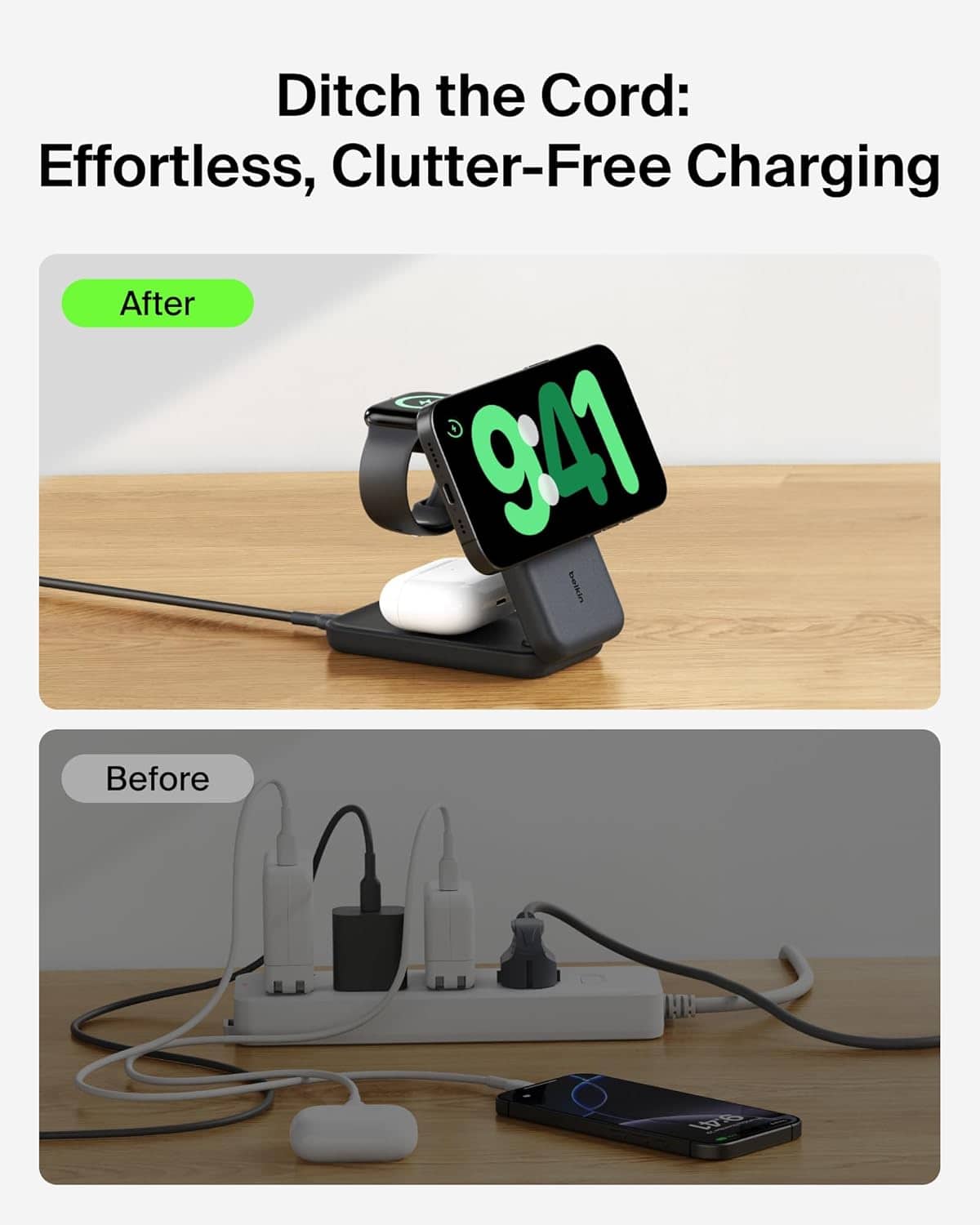 Thank you for sharing your experience with the Belkin 3‑in‑1 Foldable Magnetic Charging Stand. We’re delighted to hear that it’s working as expected, saving space, and helping you charge all your Apple devices without the hassle of multiple cords. We’re especially glad you find the foldable design convenient for travel — that’s exactly what we had in mind when creating it!