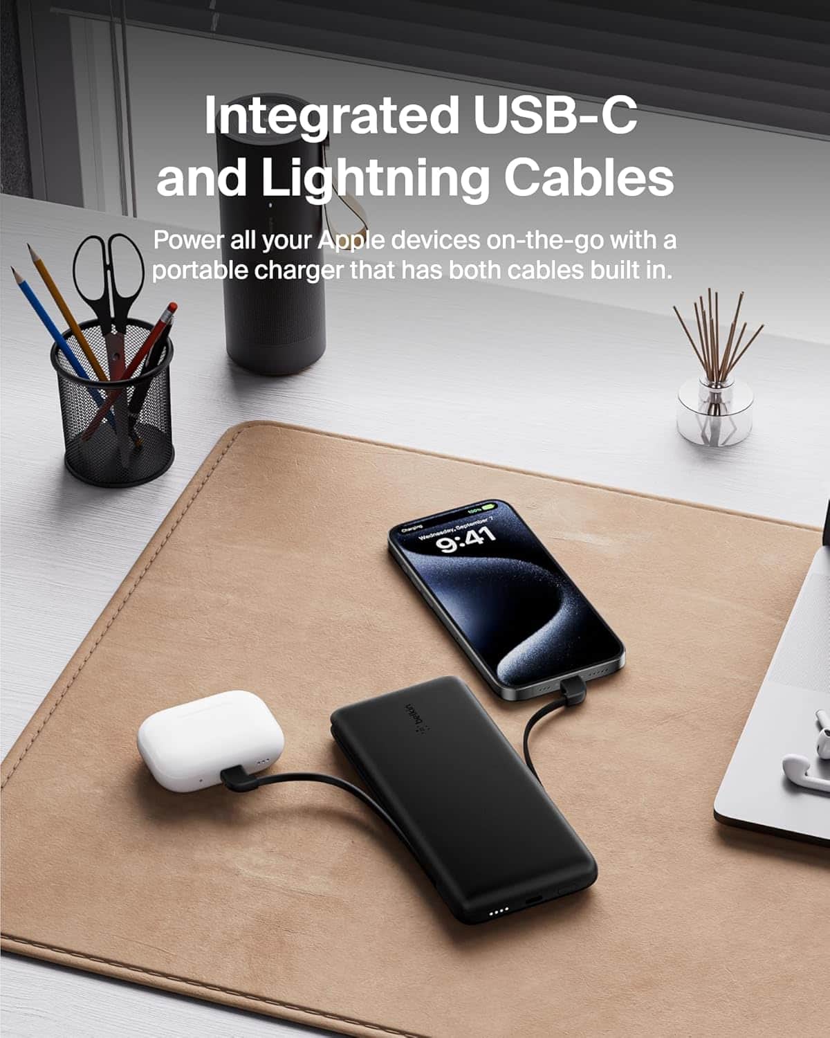 Thanks for the review! We’re so glad you’re finding our BOOSTCHARGE power bank handy with its integrated USB-C and Lightning cables! We’re happy you love it!