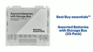 Essentials assorted batteries with storage box provides a good assortment of battery sizes with a storage box that helps provide convenient organized storage. Easy to see how many batteries you have available. Easy to refill.