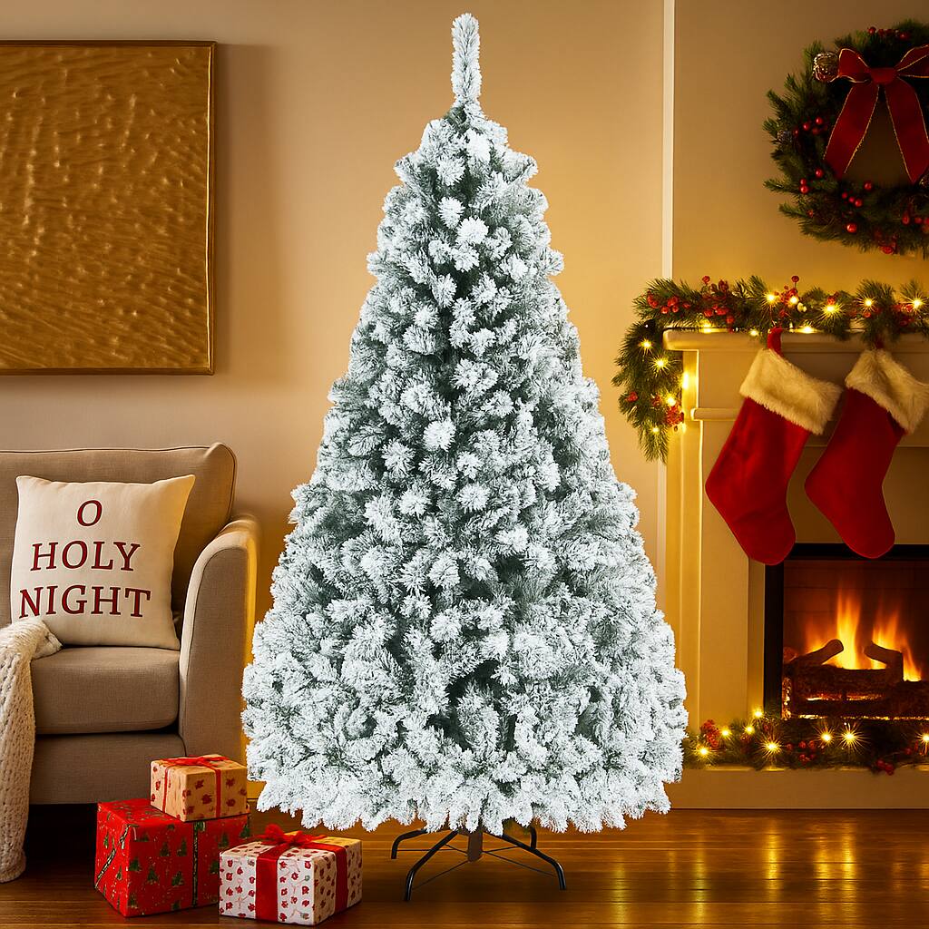 lovely fully flocked tree, very easy and manageable to fluff too