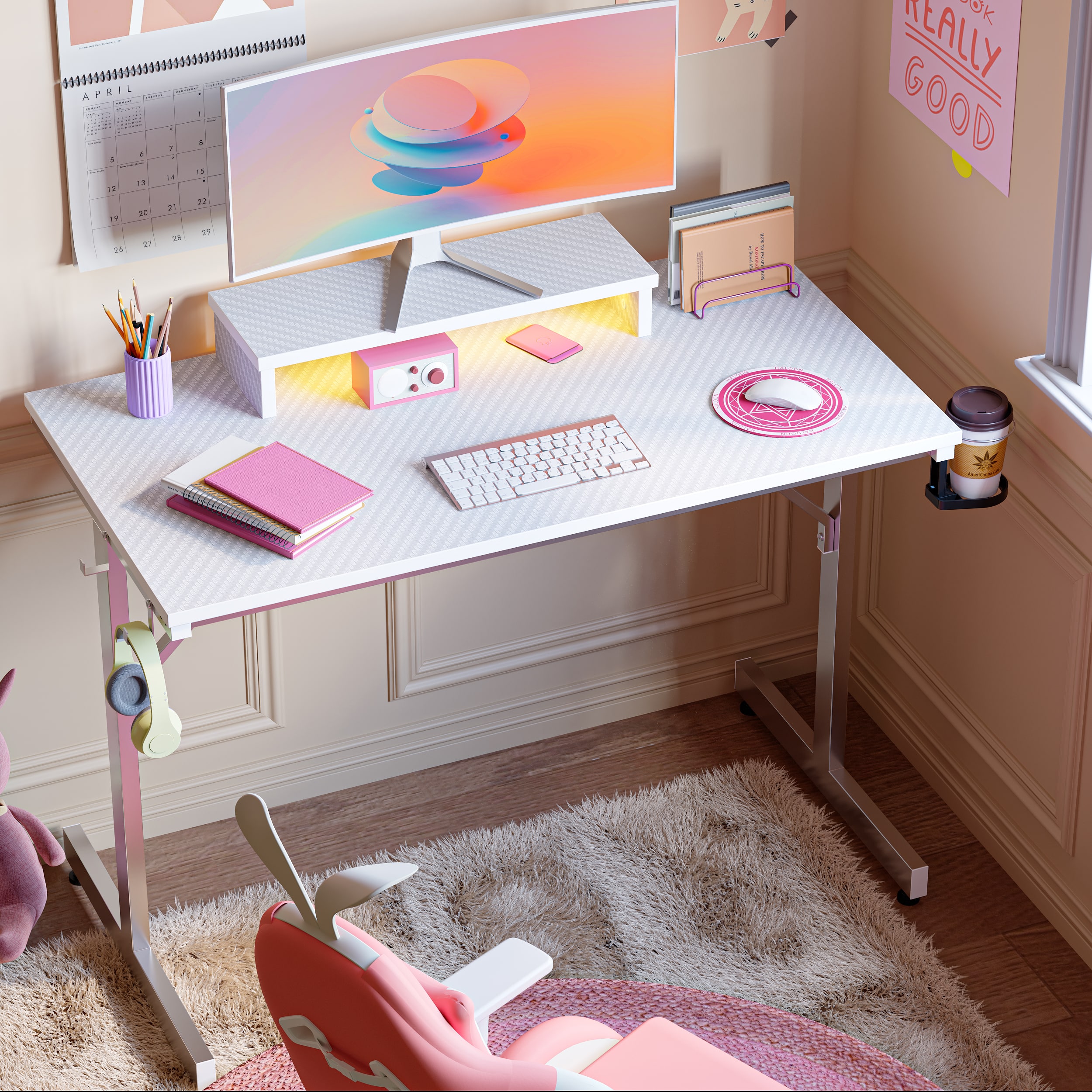 This review is from Bestier - 42-inch Gaming Desk with RGB Lights, Ergonomic Monitor Stand & Accessory Hooks - Black Marble