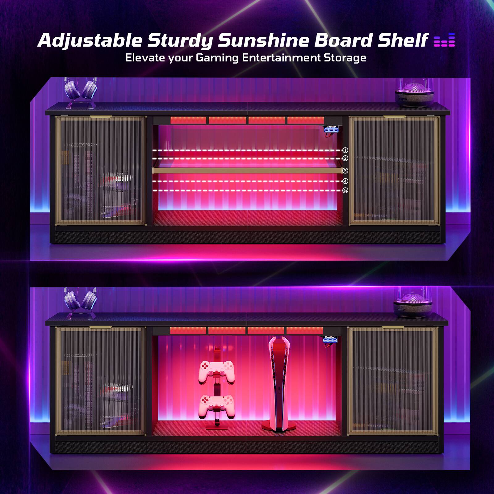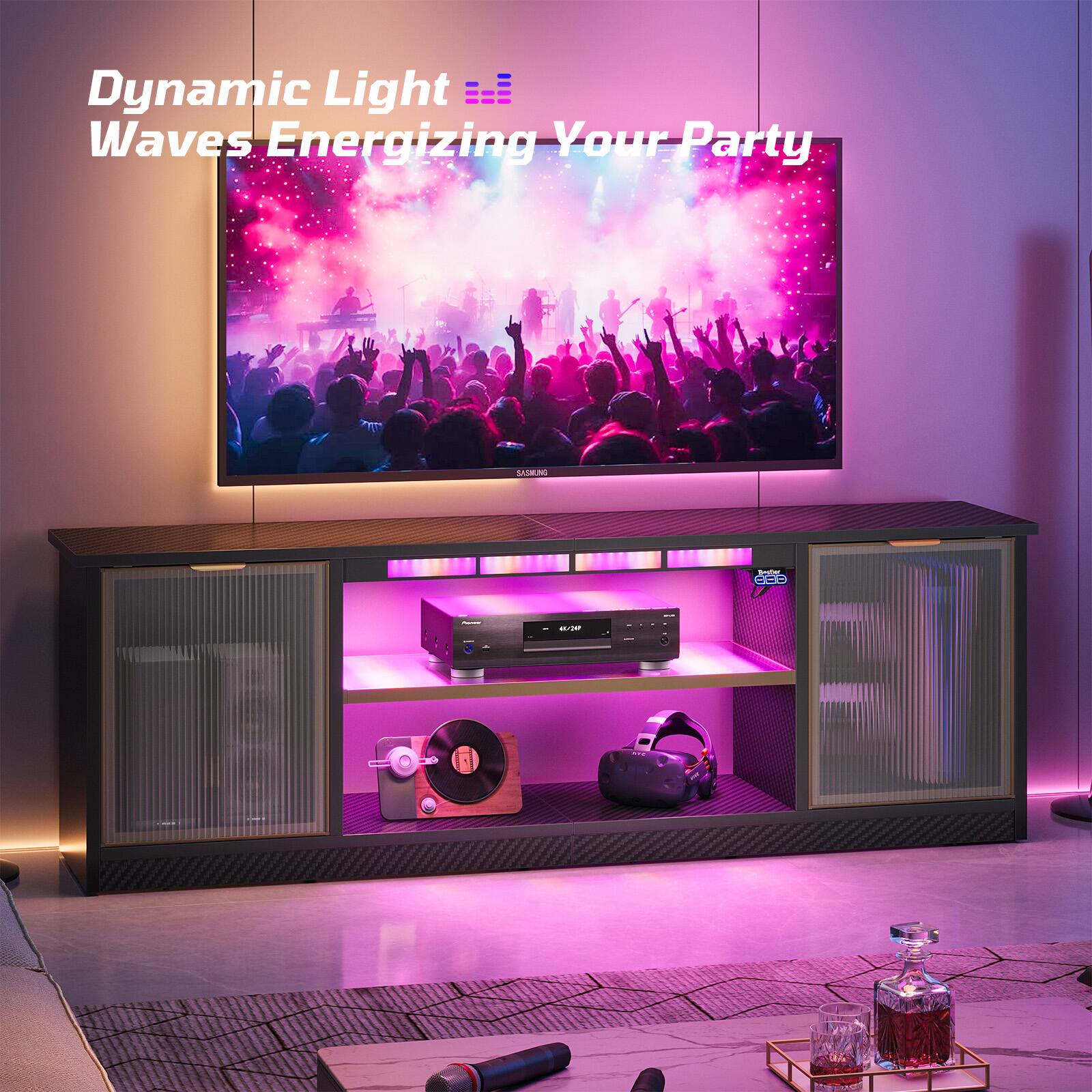 This review is from Bestier - 57-inch Gaming TV Stand with RGB Music Sync Lights, Aluminum Frames & Cable Management - Black Marble