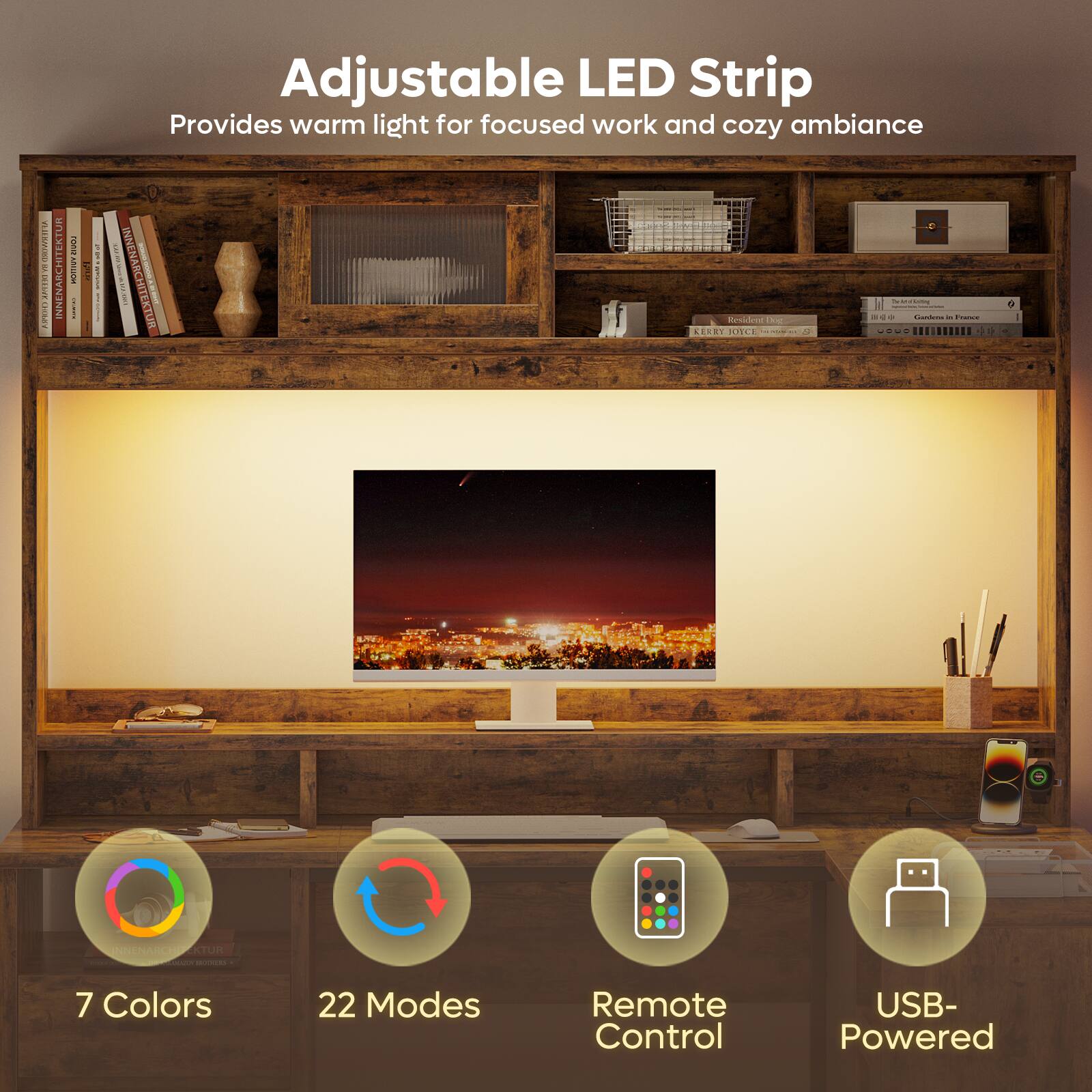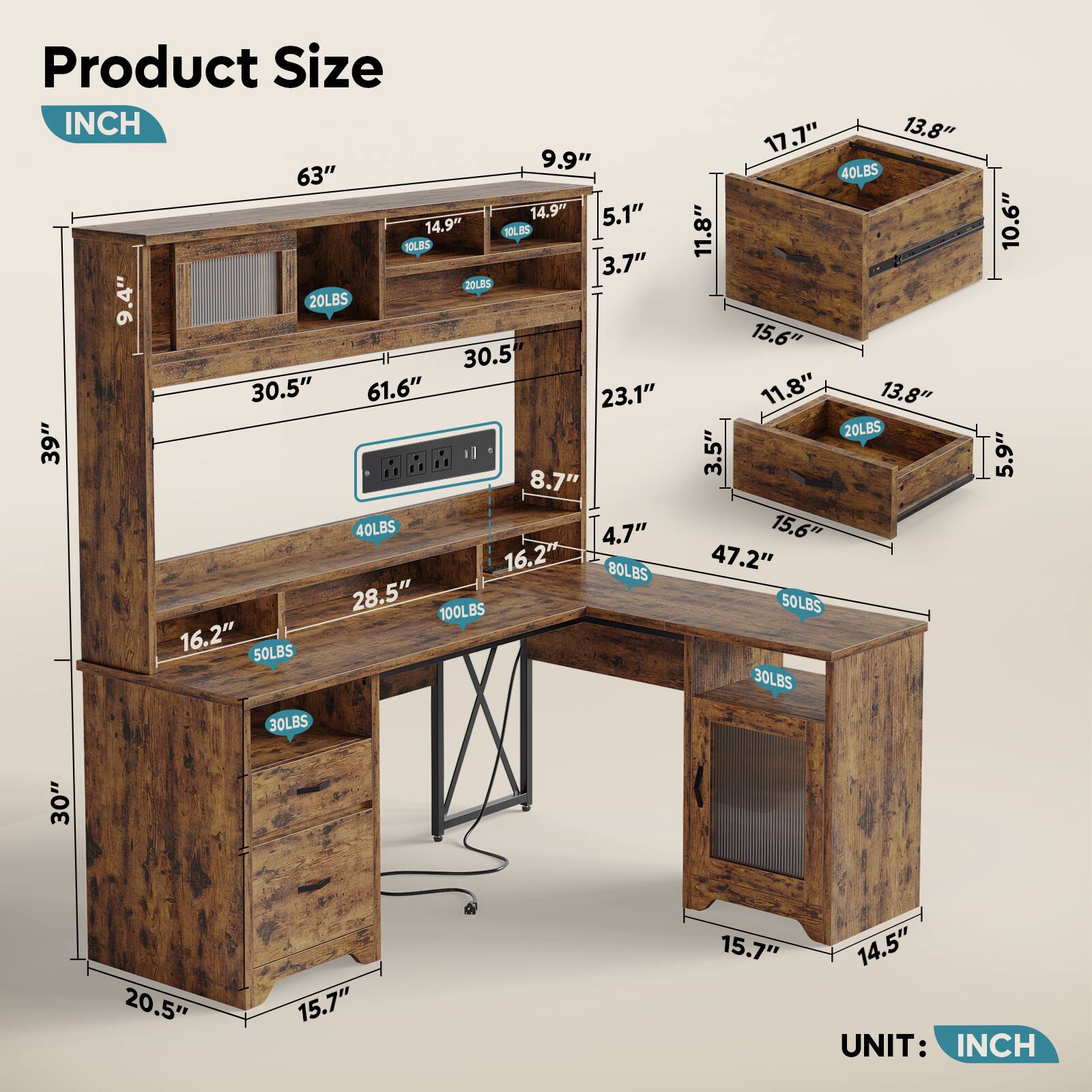 This review is from Bestier - 63-inch Hutch L Shaped Desk with Monitor Stand & Drawers, LED Computer Desk with Charging Station & Cabinet - Gray