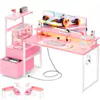 This review is from Bestier - 71inch L-Shaped LED Gaming Desk with Power Outlet Computer Desk - Light Pink