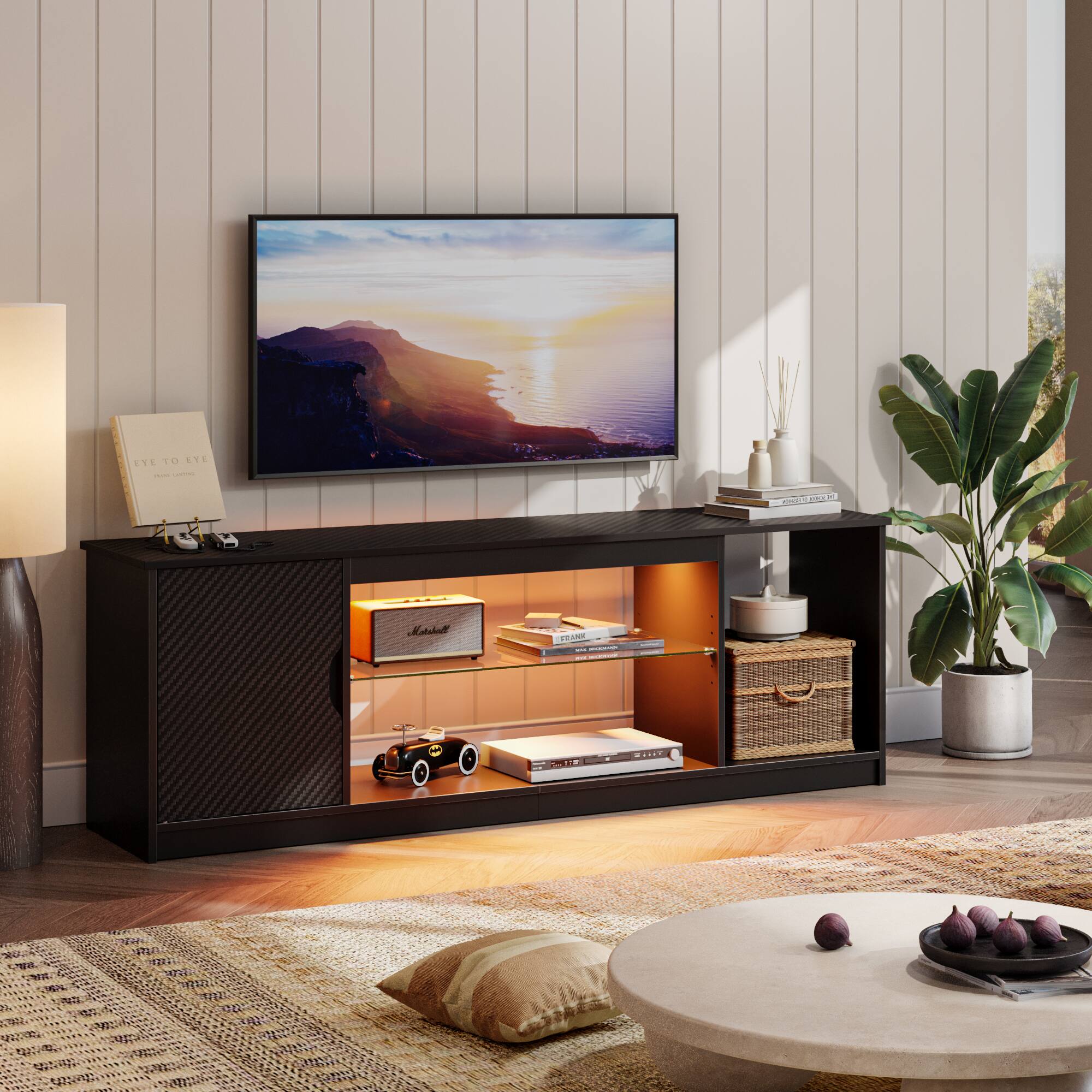 This review is from Bestier - Fits up to 65" TVs Gaming Entertainment Center with Adjustable Shelves for PS5 57"TV Stand - Black carbon fiber