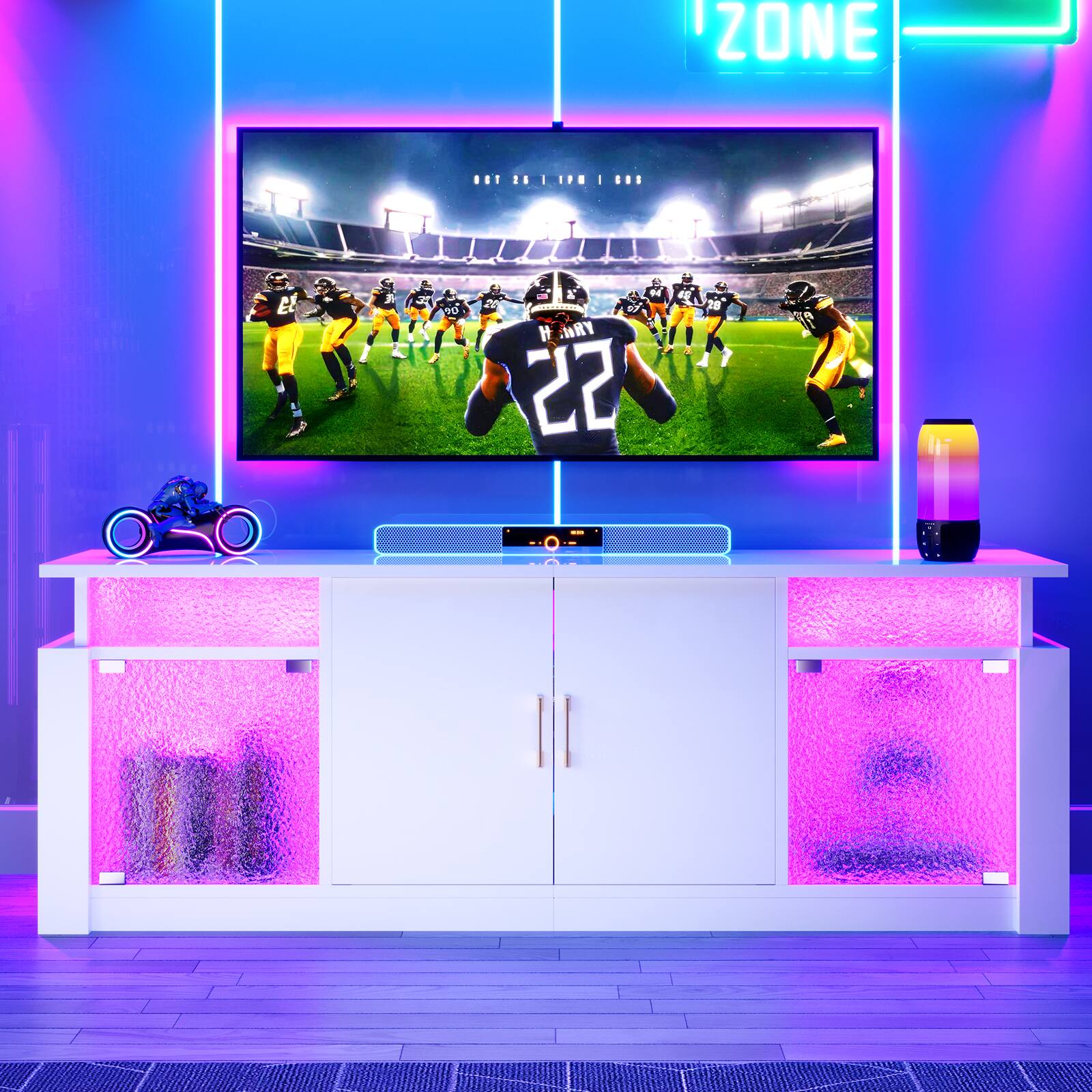 This review is from Bestier - Modern 55-70" TV Stand with RGB LED, spacious storage, adjustable shelves & glossy acrylic doors for living room/bedroom - Black