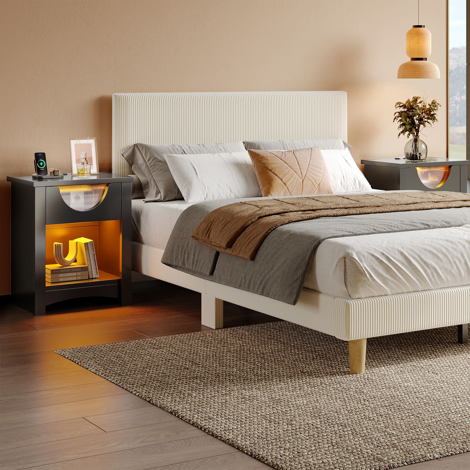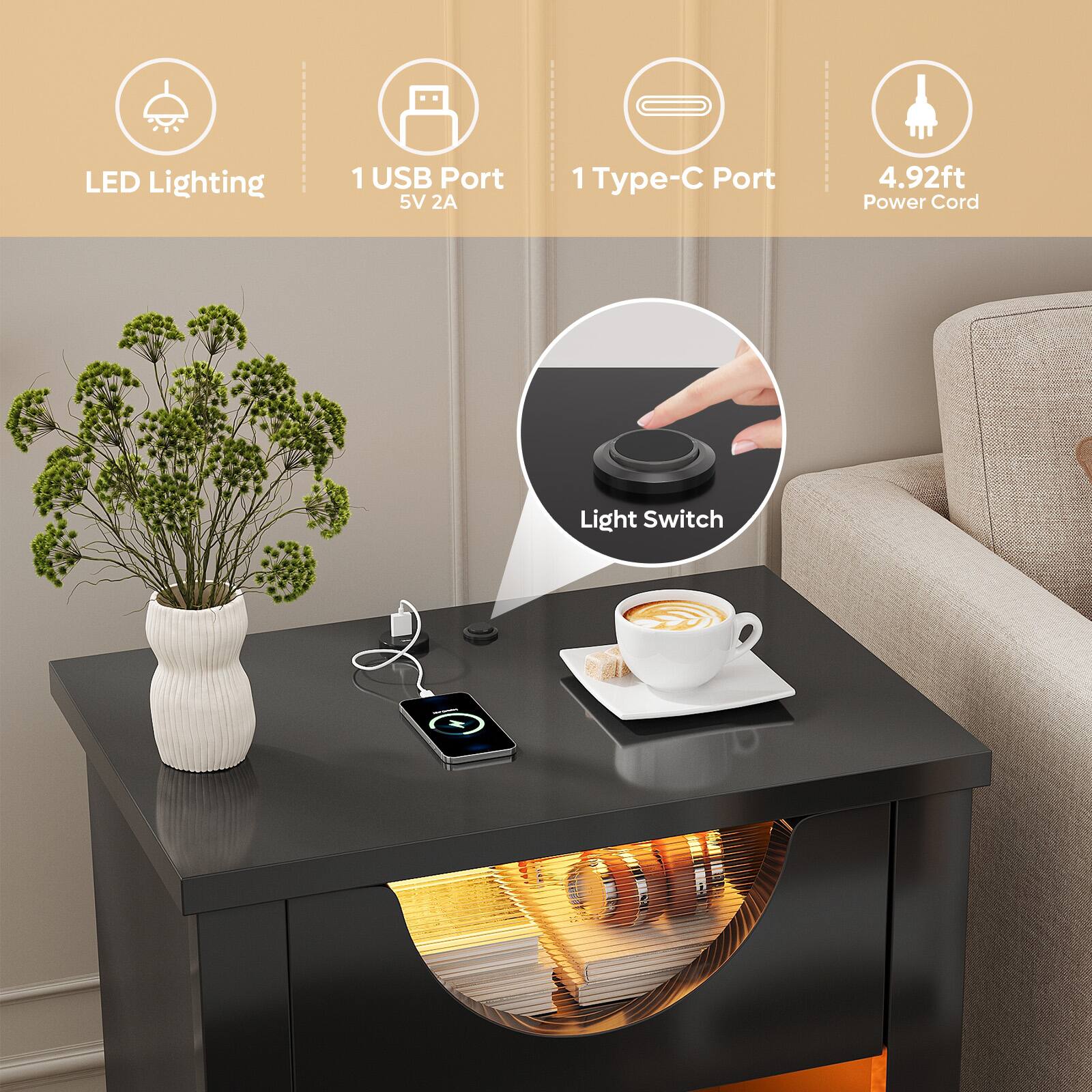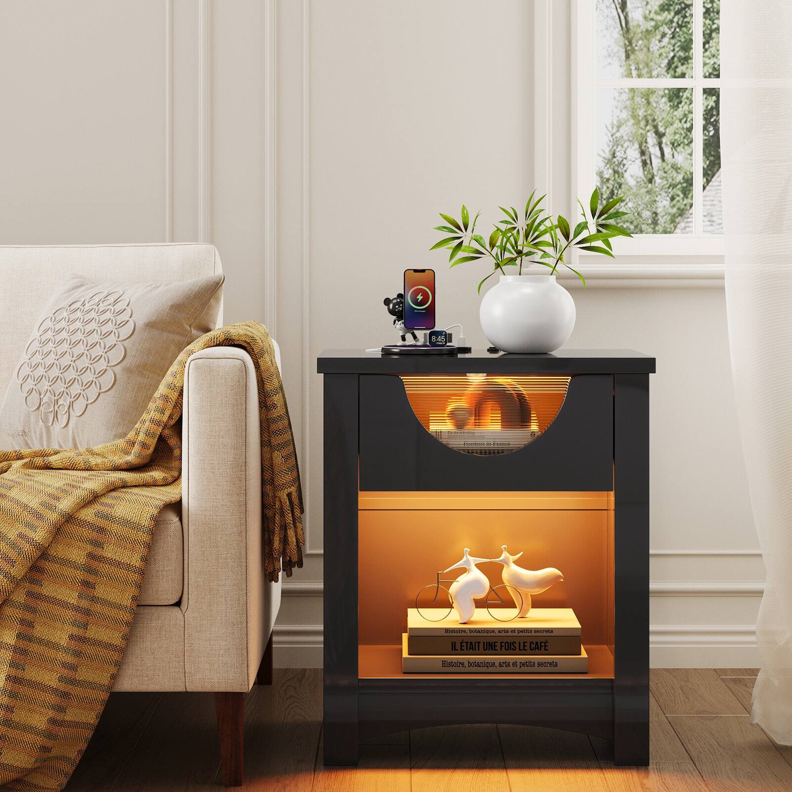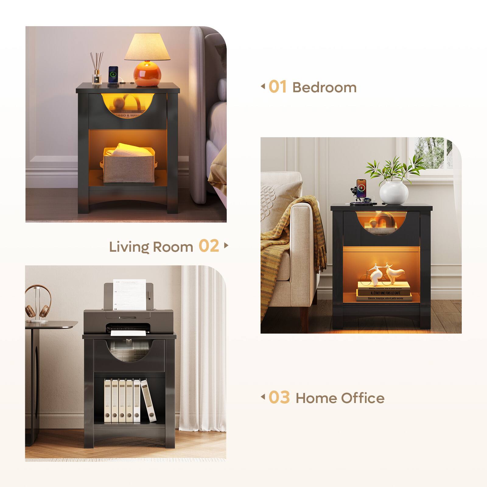 This review is from Bestier - 1-Drawer Nightstand with Charging Station, Modern LED End Table Bedside Table with Open Shelf for Bedroom, Living Room - Bright White - Single