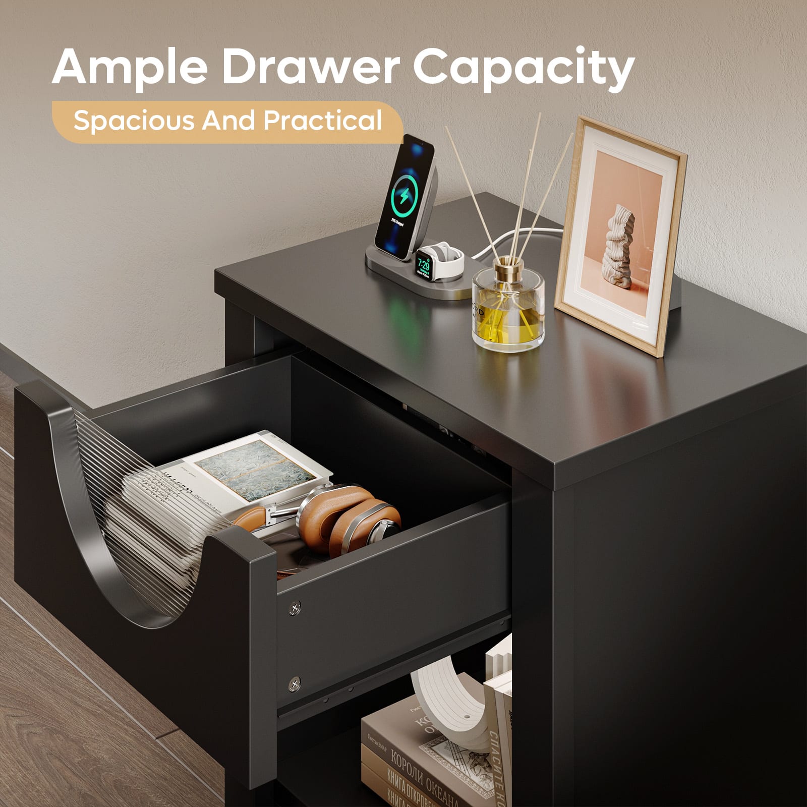 ||Posted .This reviewer received promo considerations or sweepstakes entry for writing a review.This is an amazing and really comfortable nightstand.. The light inside is amazing to sleep with or to use in the morning when you just wake up. This light not bother you at all it looks really expensive. The material that is made is really high quality.