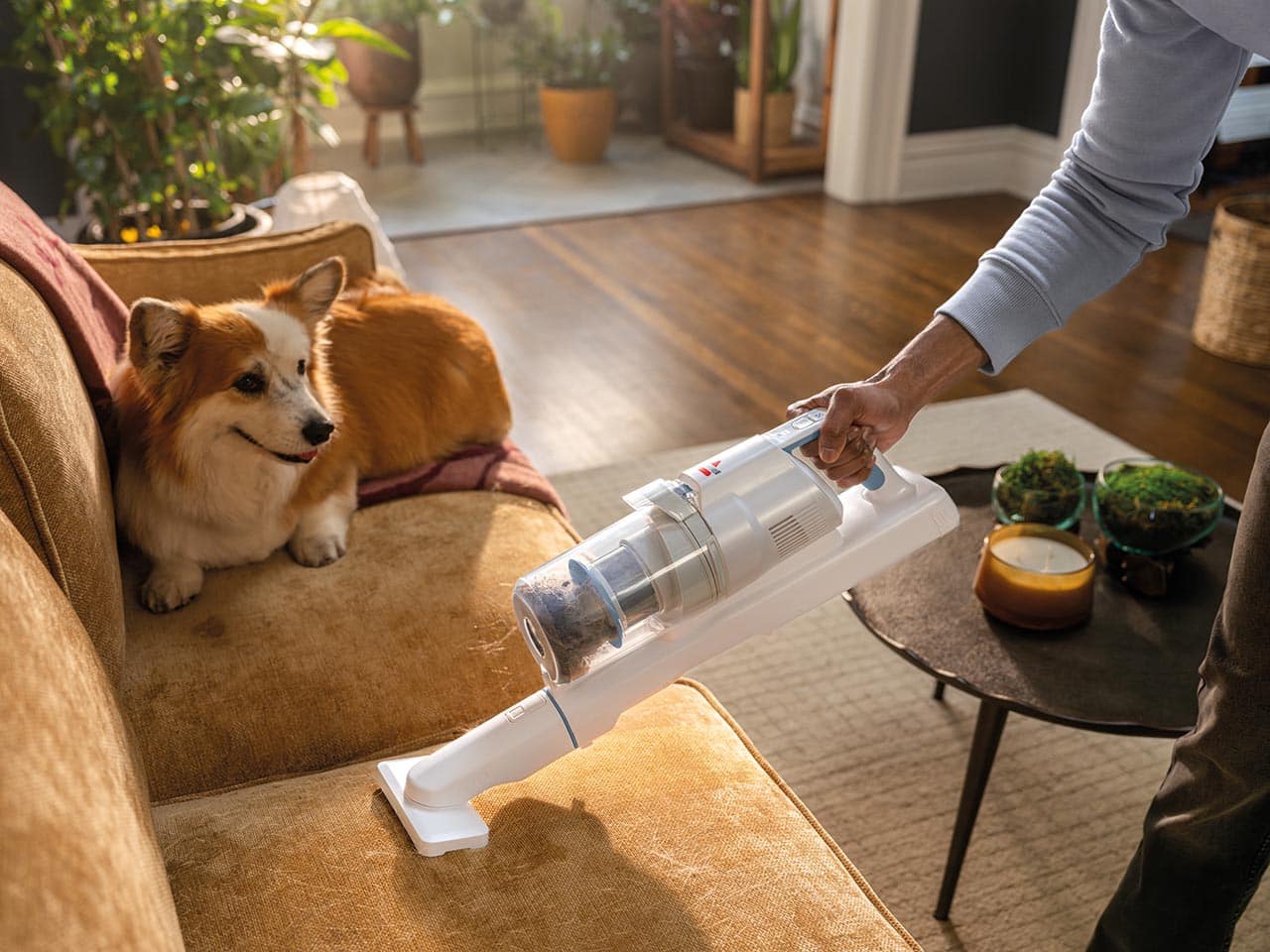 dude the light feature is so convenient. lets me see all the fur on the floor, i also love the different suction settings it has, casual cleaning or deep cleaning. super light and not a hassel to charge or empty out!