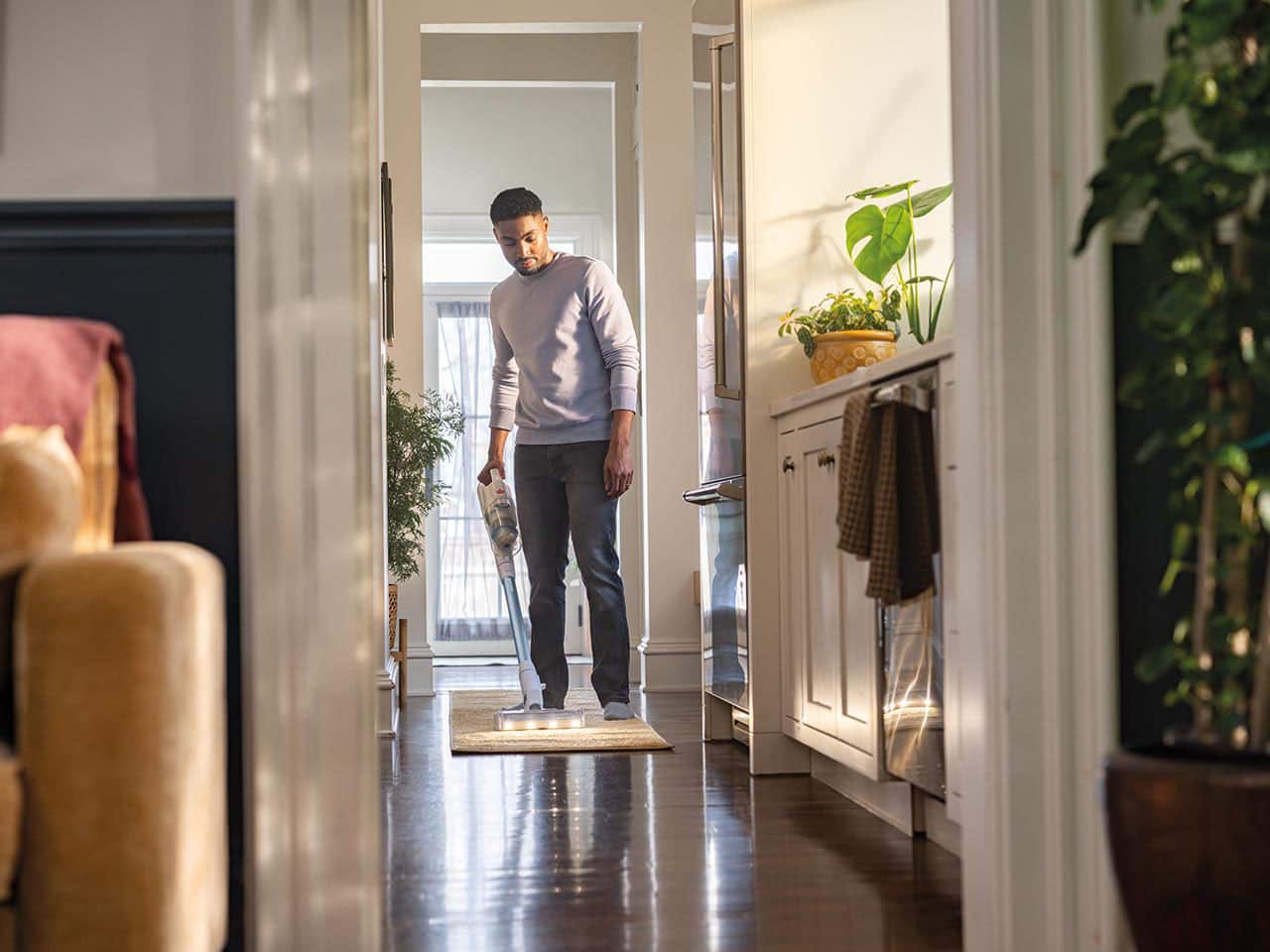 Lightweight, easy to maneuver, works great and keeps charge to vaccum main parts of the home.