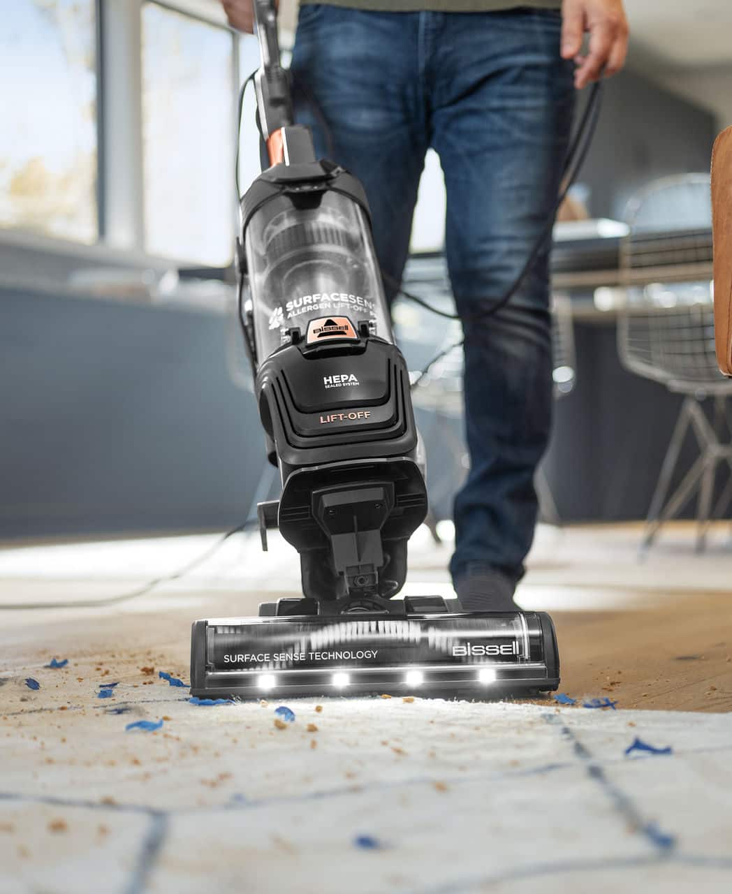 Customers are impressed with the SurfaceSense Allergen Pet Lift-Off Upright Vacuum, particularly its strong suction and ease of use. Many appreciate its manageable weight and overall performance, especially on carpets. Additional features like the LED lights and various attachments have also garnered positive attention.