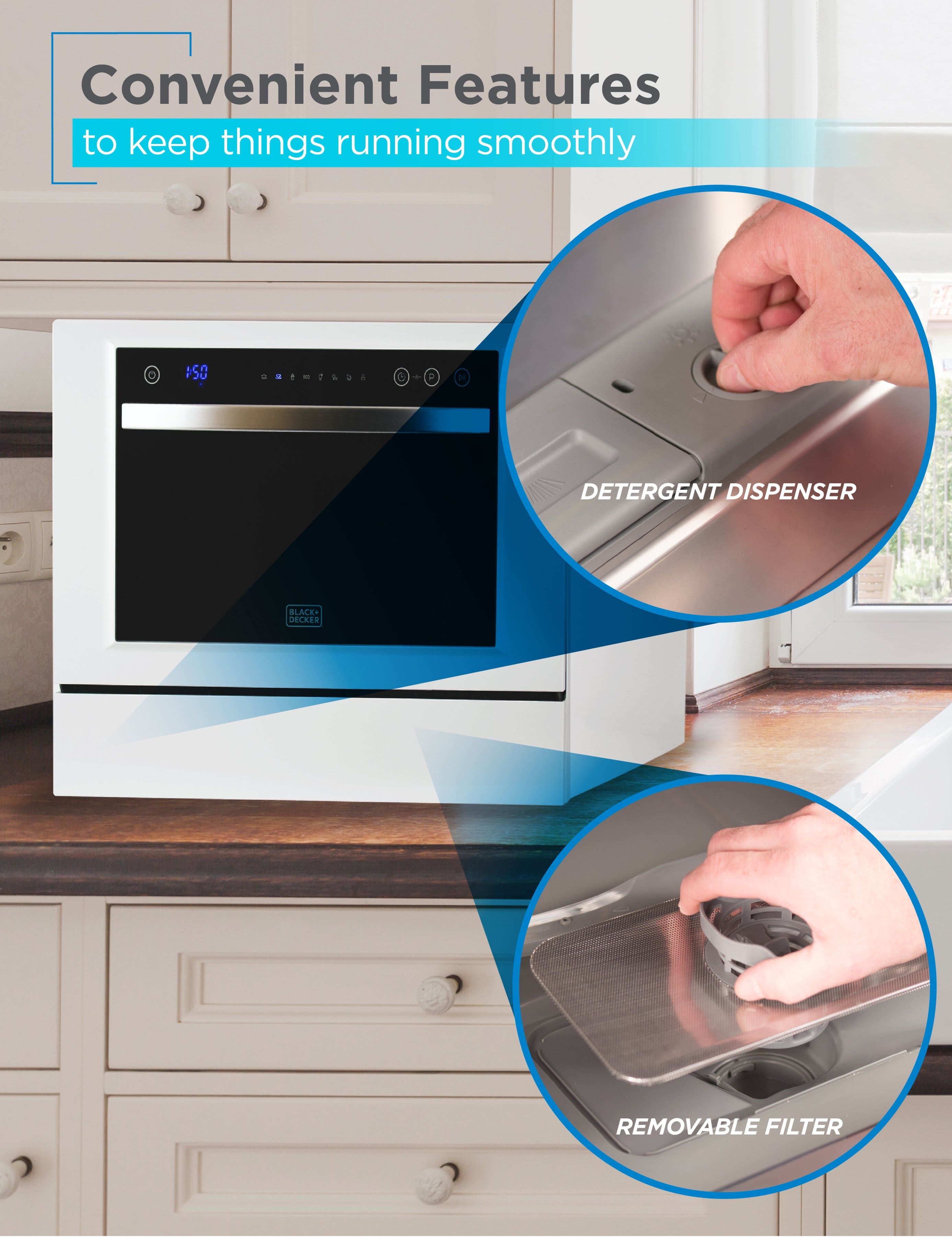 Loving this little beast so far. Does a great job getting dishes clean. Easy to clean the filter. I only wish it were about an inch or two taller, then it would be able to fit my ninja blender and other larger items. Also super simple to set up and get running.