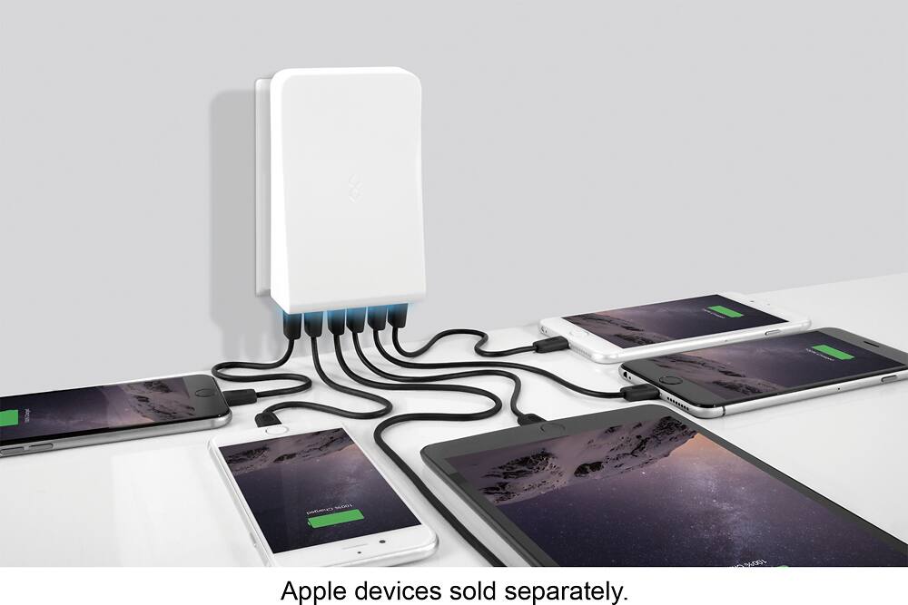 Customers are enthusiastic about the 6-Device Wall Charger's multiple USB ports, finding it convenient to consolidate charging for all their devices in one location. Many appreciate the ability to charge several devices simultaneously, eliminating the clutter of numerous individual chargers. There were no negative customer comments reported.
