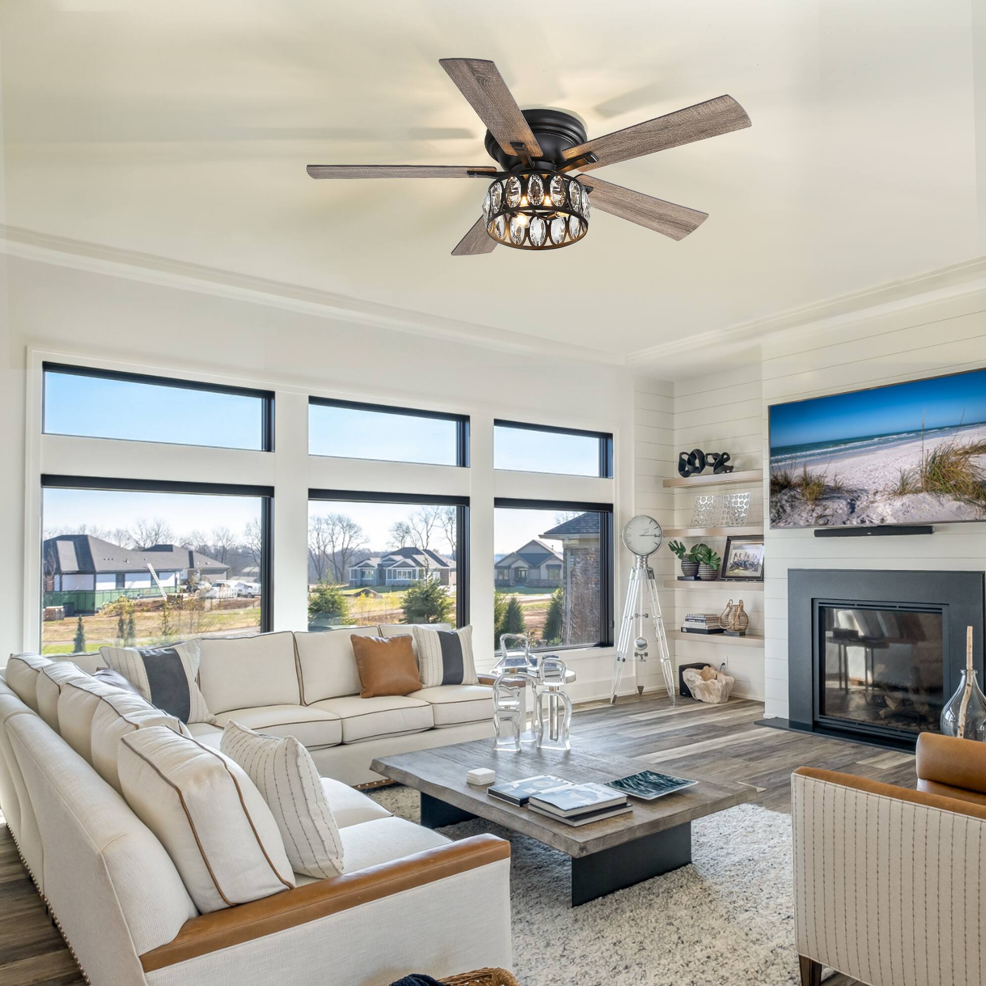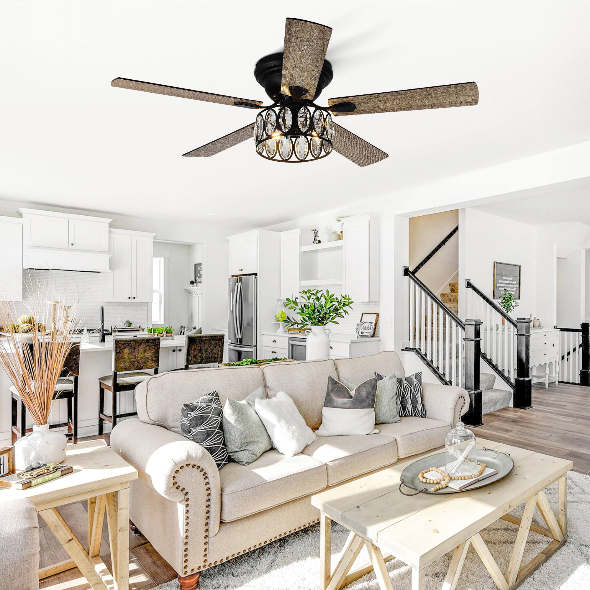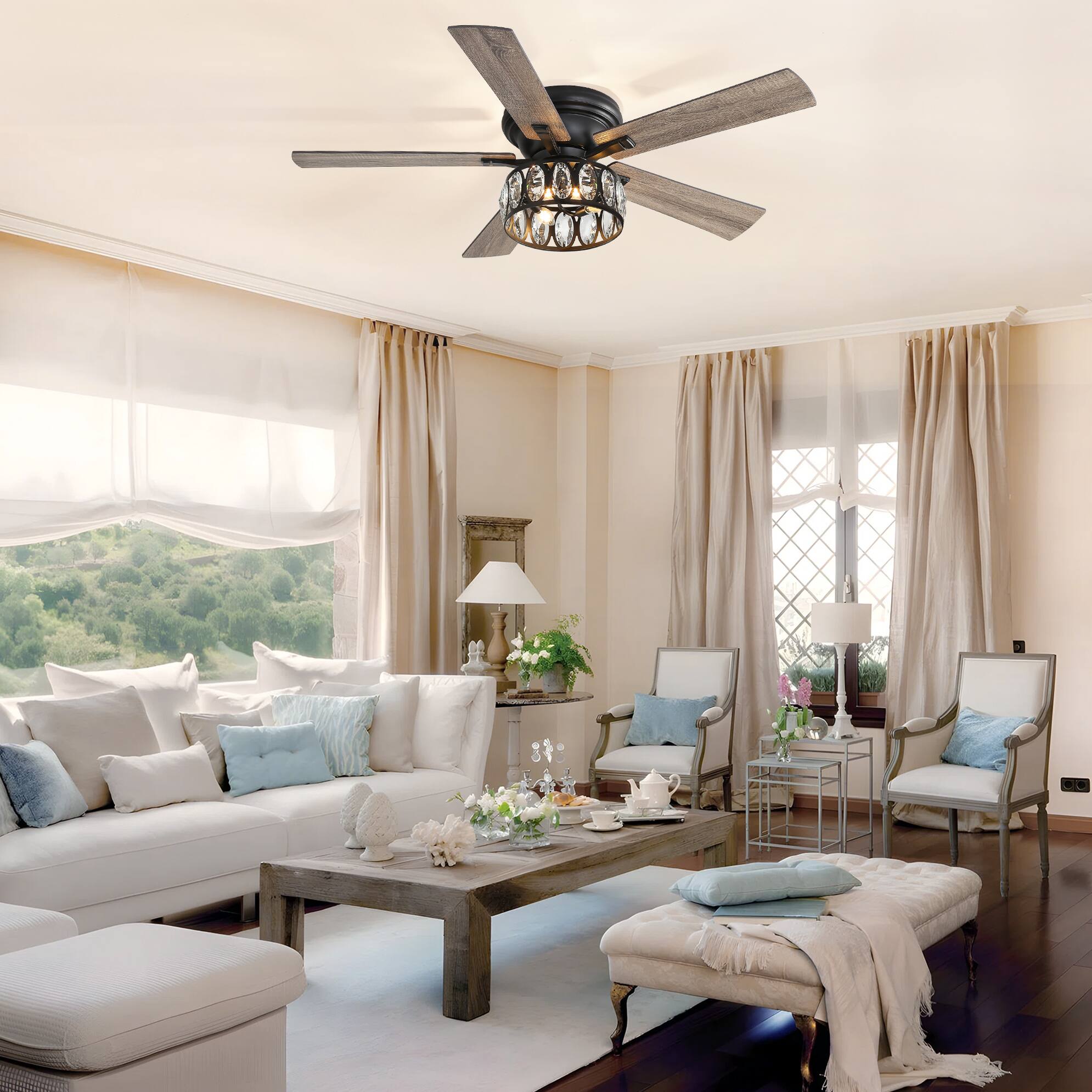 This review is from Breezary - 52'' Flush Mount Ceiling Fan with Light Kit, Low Profile Indoor Crystal Fan, 5 Blades, 6-Speed DC Motor, Remote, Timer - Chrome with Silver Blades