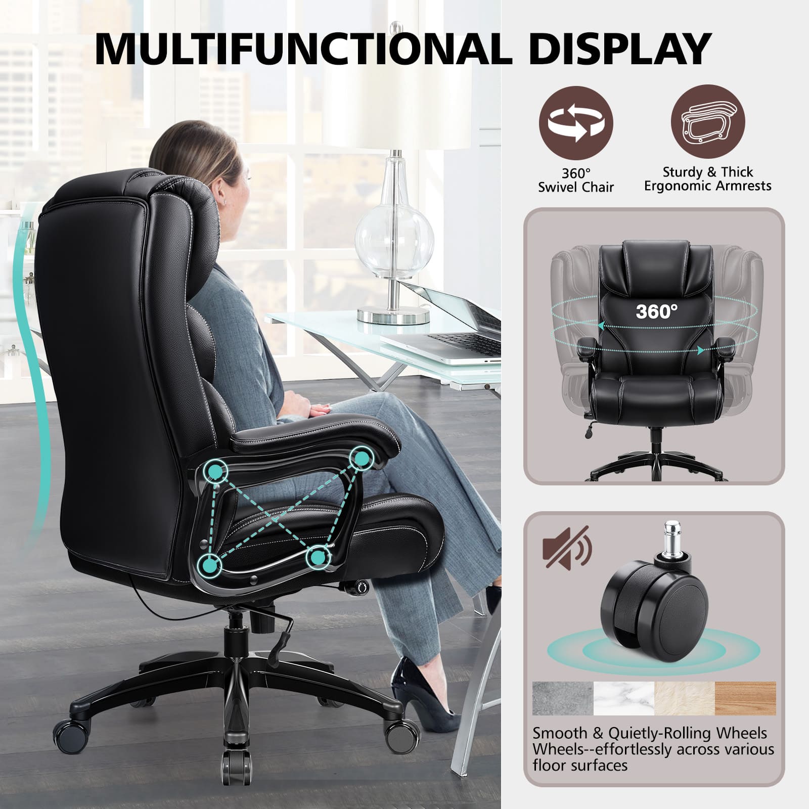 easy assembly, and it looks very nice. My son is 6'1" and it is very comfortable for him. Great for his home office