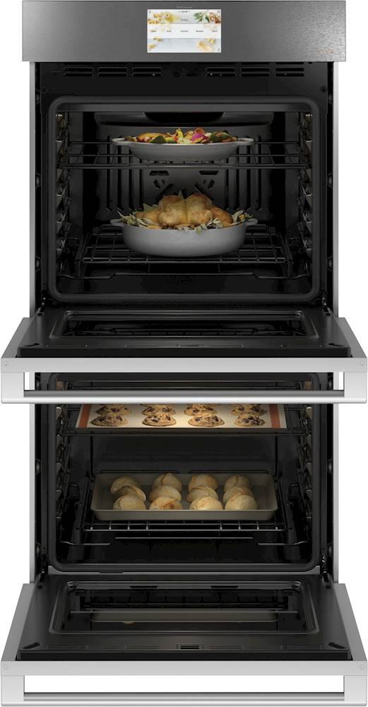 ||Posted . Owned for 3 weeks when reviewed.This reviewer received promo considerations or sweepstakes entry for writing a review.Great Double ovens.. Very good features and is wifi compatible. Convection works very well and cooks somewhat quicker. The pullout shelves are a definite plus and easy to use. The Modern glass stays much cleaner than the usual stainless steel.