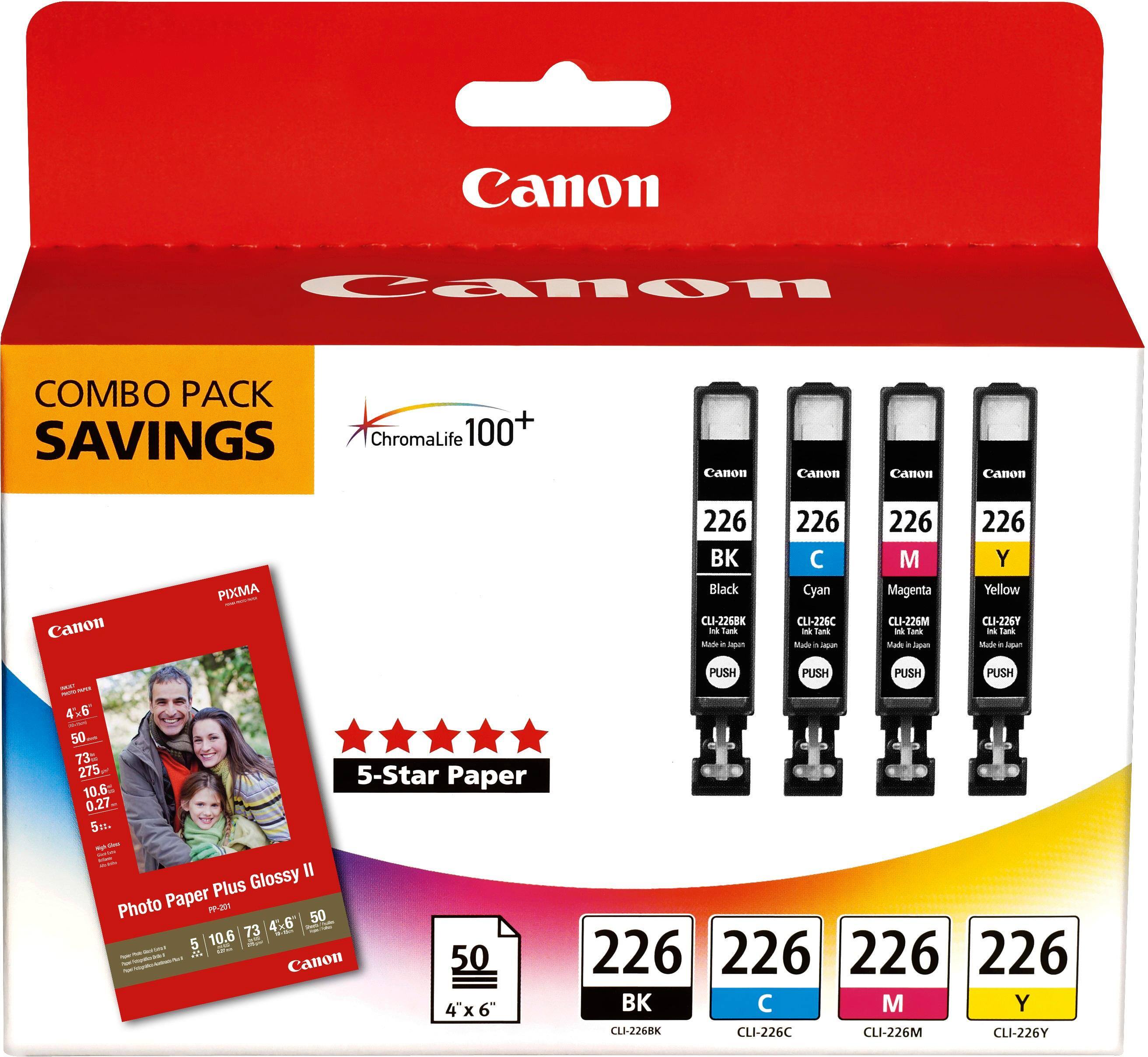 Genuine Canon ink at a good price--I'm pleased with my recent Best buy purchase of Canon - Cli-226 4-pack Ink Cartridges + Photo Paper - Black/cyan/magenta/yellow (Black/Blue/Pink/Yellow) , 4546B007.