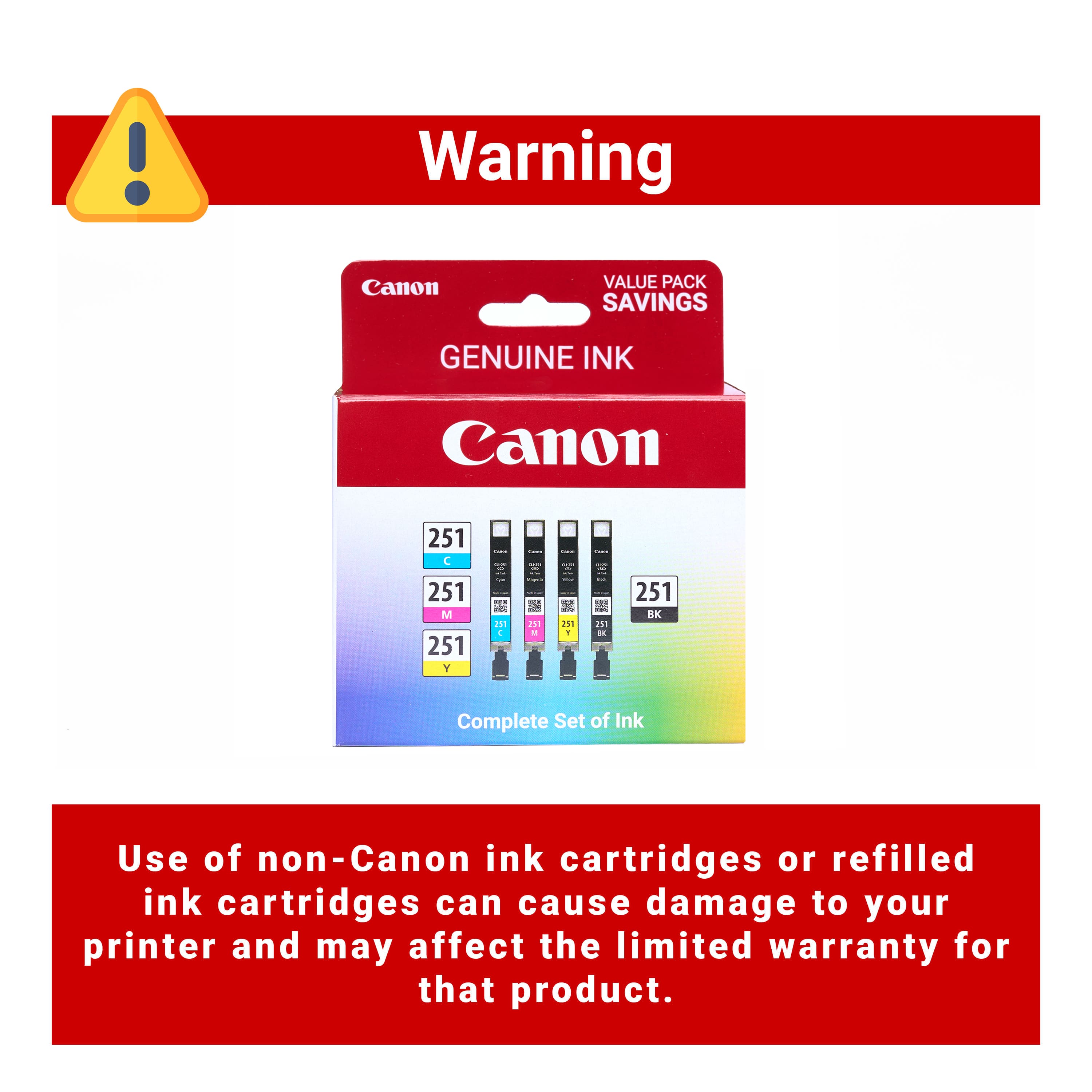 Ink cartridges provide me backups for all 4 Canon 251 colors.
